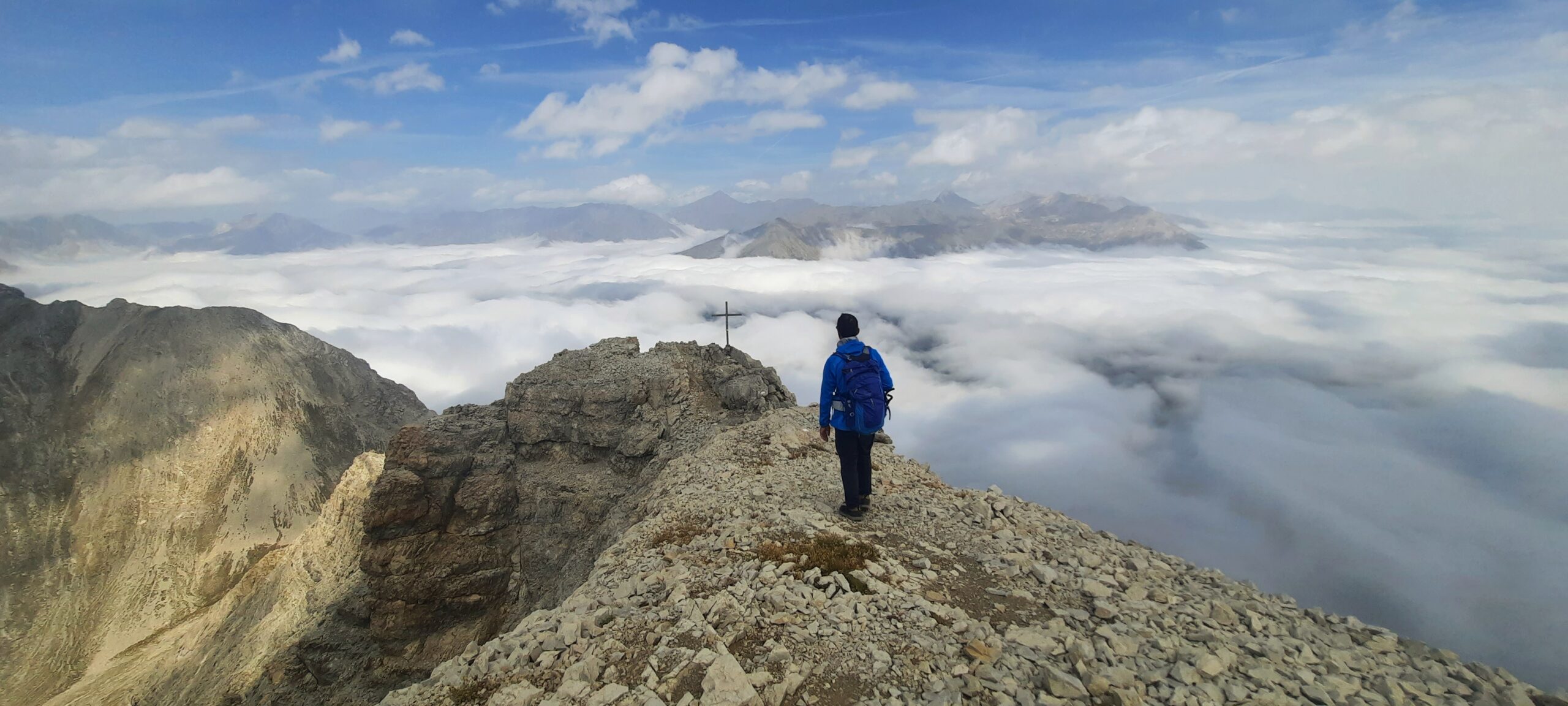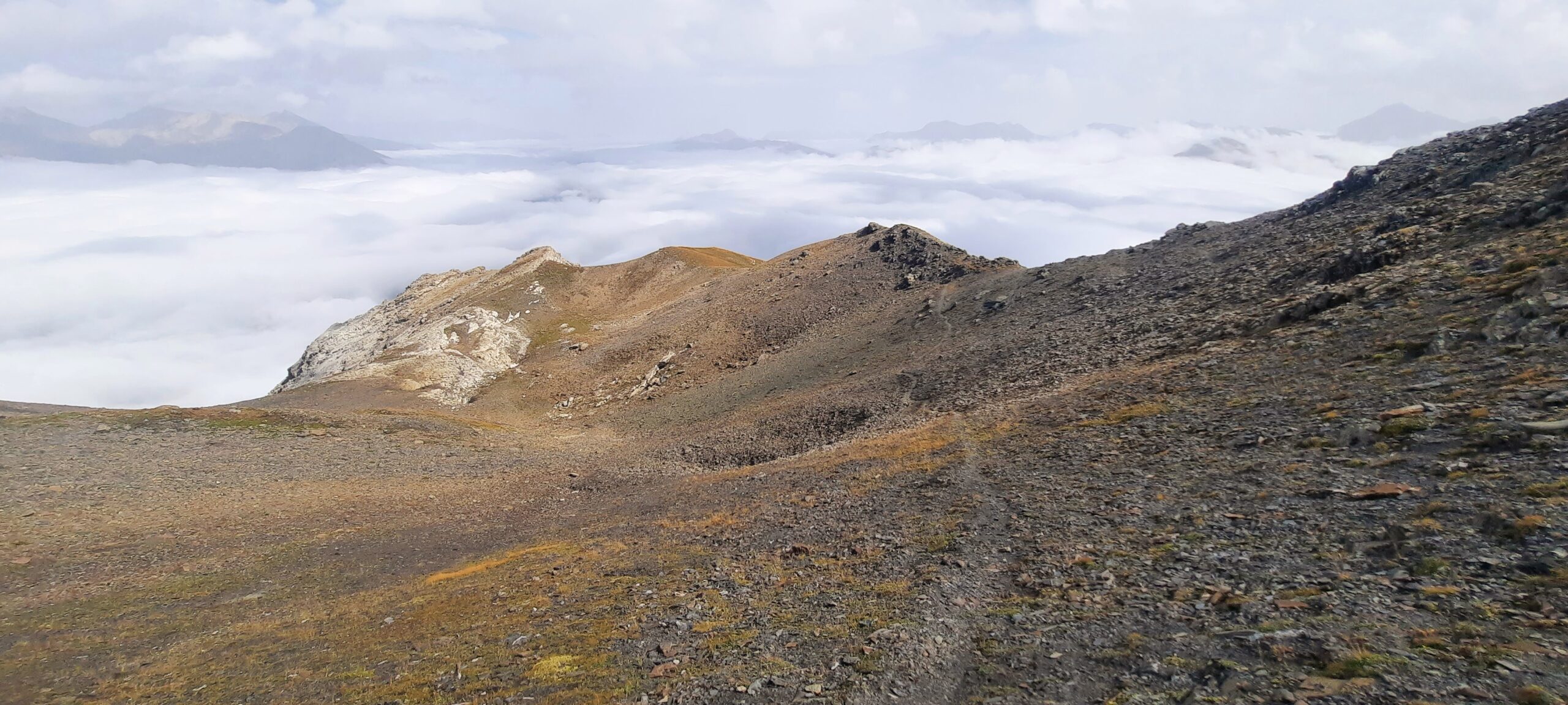 Piegando ora a destra si incontra un rudere diroccato, che si lascia a destra continuando sulla cresta fino all’intaglio che precede l’anticima.