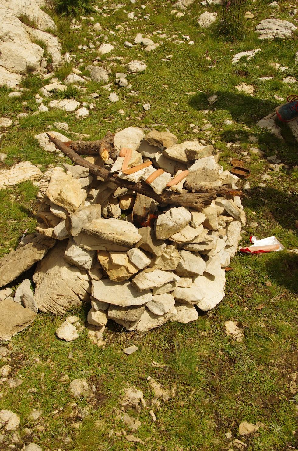 Al Passo Desertes i ragazzi hanno costruito un piccolo barbecue (complimenti per il mirabile lavoro ingegneristico) su cui hanno arrostito wurstel e tomini: ottimi!!!
