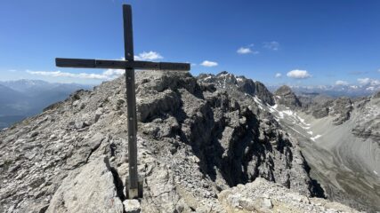 Dal colle ho proseguito lungo il sentiero principale fino a raggiungere la vetta. Il terreno è piuttosto franoso, ma il tracciato resta abbastanza evidente grazie alla presenza di ometti e segnavia bianco-rossi. Durante la salita ho sistemato alcuni ometti crollati e ne ho aggiunti di nuovi nei punti in cui il sentiero risultava poco chiaro.