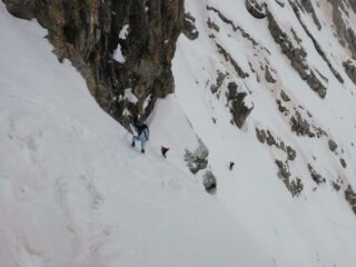 Super Rampa alla Clotesse, su neve fantastica e mai impegnativa. Il grado di ski tour è molto generoso. Ovviamente con la neve di ieri era permessa qualunque cosa. Alla fine del canale, sopra il salto (attenzione) andare a sx faccia a valle e rimmettersi successivamente nella “Canala”. Canala in condizioni molto buone. Neve, poca, quasi fino all’auto. Segnalo che abbiamo trovato paio di pelli. Potete contattarmi al 348/2316352.