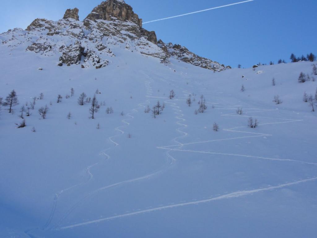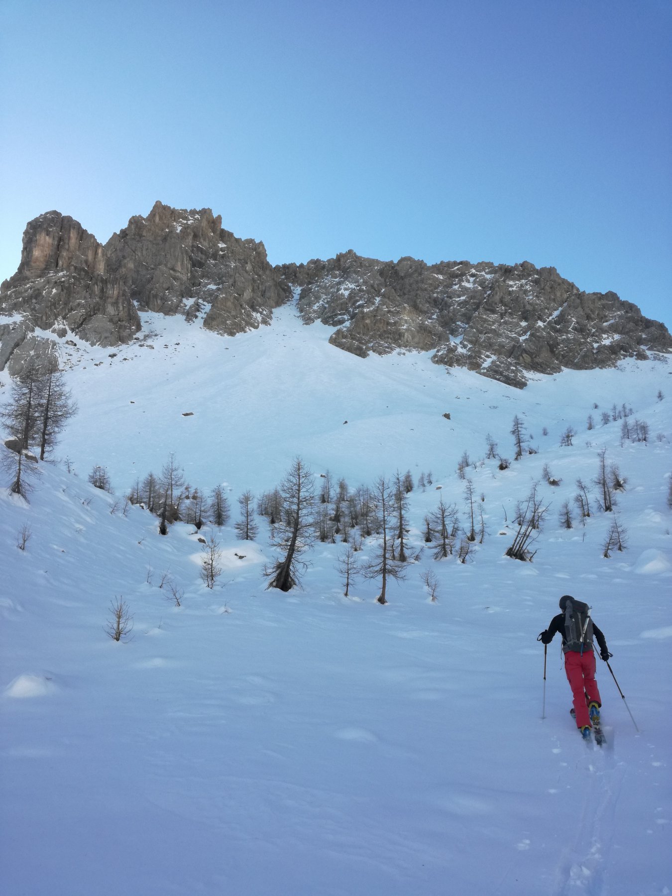Meta poco frequentata, può risultare una valida alternativa alle più conosciute discese circostanti, con breve avvicinamento, già visibile la parte bassa da Pratorotondo.