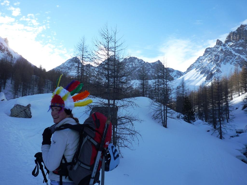 Freddo polare nella comba Emanuel con vento che iniziava a soffiare gagliardo da SW coprendo in breve le tracce. Canale ben al riparo con ottimo innevamento e gran mazzo di Alessio a forare. Polvere per 3/4 del canale su fondo duro, poi più varia ma sciabilissima.