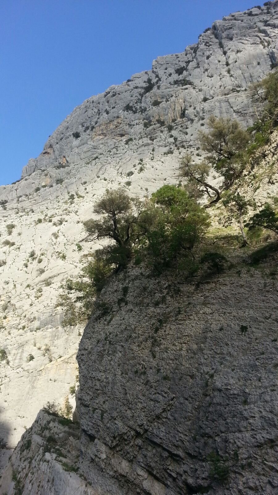 L6 – VI+ 35m_muro verticale con numerosi appigli, attenzione a qualche presa, al termine passare tra alberi e sostare su cengia