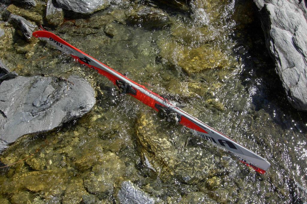 Innevamento mediocre , da inizio giugno . Si riesce comunque a scendere sci ai piedi con un solo gava-buta sino a pochi metri dal ponte. In alto sul pendio neve fresca gia’ in parte trasformata, da meta’ pendio in giu’ primaverile piu’ che discreta, nel vallone ci si arrangia tra la neve pressata delle poche slavine scese e qualche tratto un po’ cedevole qua e la’.
