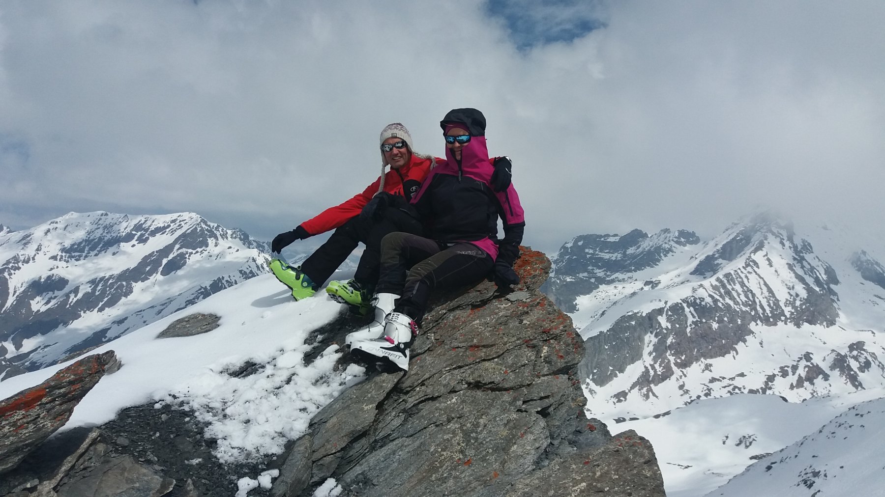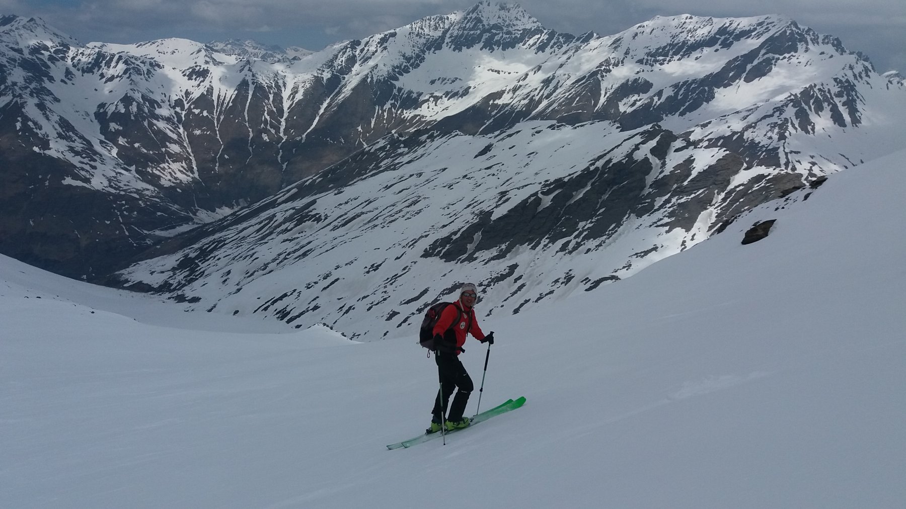 Si parte sci ai piedi su residui di valanghe. Utili ma non indispensabili i rampant sul ripido pendio che conduce alla vetta. Discesa molto bella con manto nevoso sempre ben portante ad eccezione di breve tratto a quota 2.800 circa. Condizioni eccezionali da quota 2.650 in giù con stupenda neve primaverile liscia come un biliardo. Con Daniela, Vincenzo, Danilo, Alberto, Volfango e Luca.