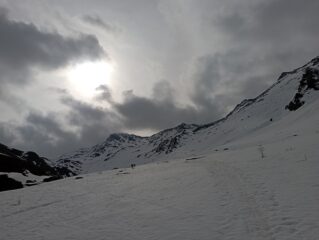 Neve dal ponte, vallone molto magro ma percorribile senza problemi. Bella neve primaverile fino a circa 2600 m. Più in alto crosta da vento non sempre portante, fondo piuttosto irregolare. Ultimi 100 m. neve molto scarsa, si riesce comunque ad arrivare a 20 m. dalla punta. Almiane e Valfredda pelate nella parte alta. Con Francesco, Emilio e Pierangelo.