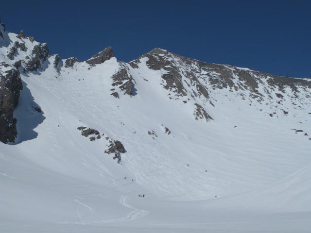 La relazione di ieri messa su gullier, ha fatto il suo effetto parecchi ski alp, gita lunga x il suo sviluppo ma bello l’ambiente, sicuramente la parte bassa è al limite, ma x qualche giorno si può ancora fare, dopo gli ski si porteranno un bel pò a spalle, un mio consiglio partite presto per non sofrire il caldo e x avere una neve migliore anche se nella parte alta la neve non manca, oggi si passava da tratti di farina a neve primaverile, favolosa la balconata sul Bianco che si ammira dal colle, un saluto ad Andrea e alla locomotiva di Guido, alla prox