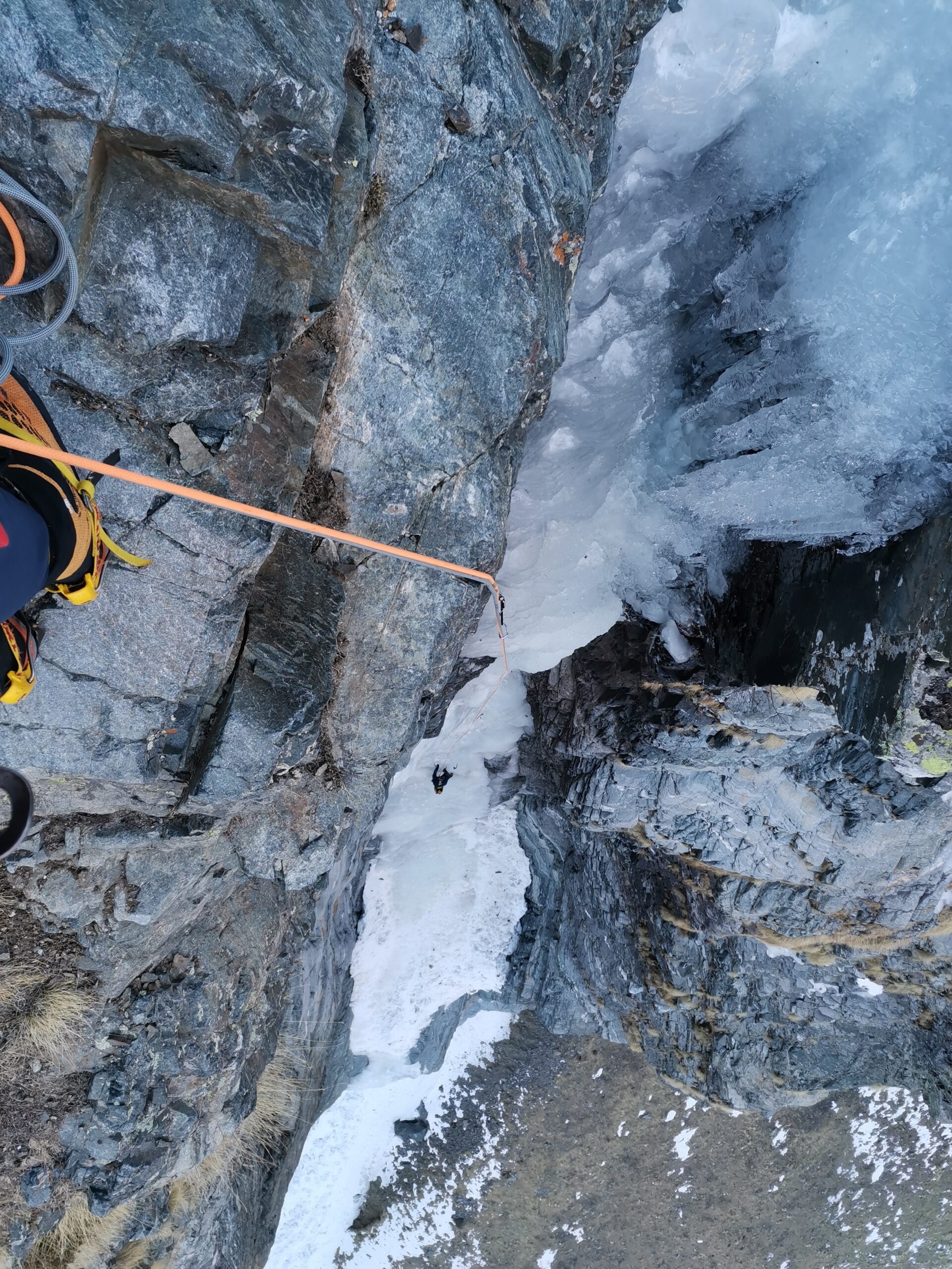 Partiti dal parcheggio di Lillaz alle 7 con -3° ed in 40 minuti siamo arrivati alla cascata, con già una cordata in preparazione. L’intenzione era di salire fino in cima ma eravamo troppo lenti, peccato.