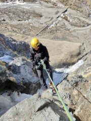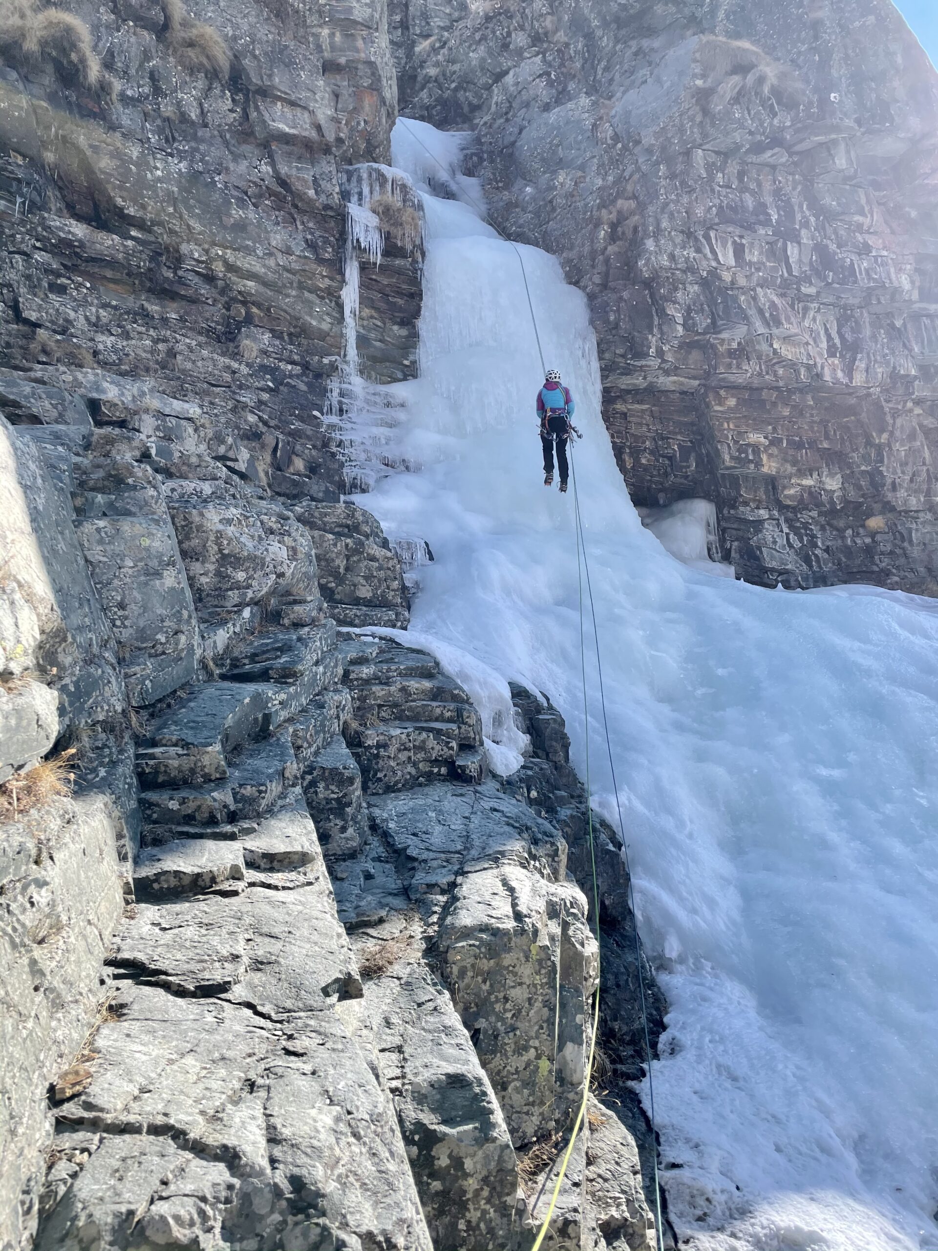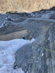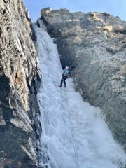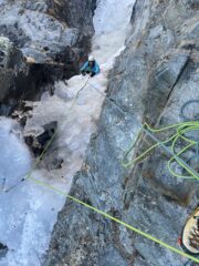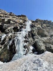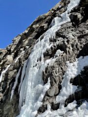 Cascata al limite con alcune parti -sul primo tiro- che suonano vuoto. Parecchio scalinata nei primi due tiri. Solo noi sulla cascata.