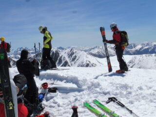 Ottime condizioni. Gran ritrovo tra simpatici scialpinisti e qualche camminatore. 30 minuti di sci a spalle