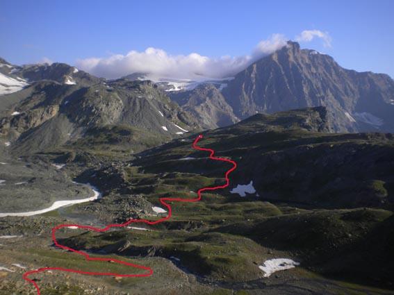 4) Alla fine della morena che conduce al Clapier Blanc per puntare alla piccola sella che sostiene la dorsale che conduce al piccolo ghiacciaio prima del colle del Collerin.