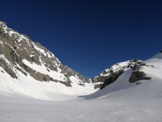Sci ai piedi dopo circa 50 minuti dalla macchina. Il torrente si attraversa circa 200m lineari a monte del ponte saltato. Ci si arrangia saltellando tra roccioni vari. Sentiero estivo con solo qualche innocuo nevaio. Messi gli attrezzi si sale su neve perfettamente rigelata, fino al traverso rognoso per accedere al pian Gias. Io sono salito con i ramponi, volendo si fa senza ma in sci la vedo dura. Occhio qui che ci sono alcune bocche di balena. Tutto semplice fino al colle, con uso dei coltelli per neve davvero dura. Ho provato a salire l’Albaron ma poco oltre metà cresta ho mollato per eccessiva esposizione con neve dura. In cima al Collerin con gli sci. Discesa su neve dura ma non ghiacciata, poi nel canalone ci sono punti morbidi che comodamente fanno arrivare al piano. Qui neve marcia e collosa. Attenzione a non sprofondare, poi gli ultimi 100m su neve estiva portante. Occhio ai tratti esposti del sentiero. Avvistati stambecchi a decine e alcune fischianti marmotte. Canale capre impraticabile, buchi e acqua.