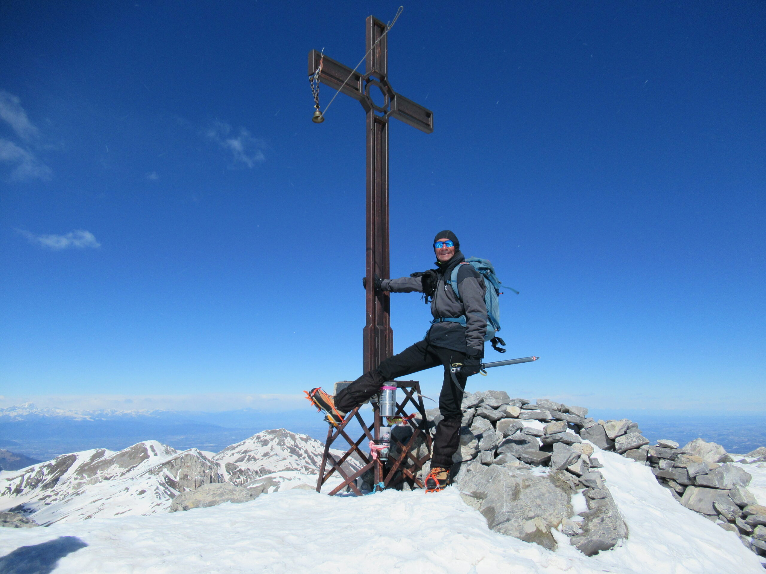 Calzati i ramponi e presa la piccozza alla base del canale, ci addentriamo trovandolo in buone condizioni e dopo il breve tratto pulito, ad affrontare il tratto piu’ ripido con alcuni punti di neve molto dura entrando nella parte superiore e a sx ad affrontare il ripido tratto finale per uscire sulla dorsale accolti da un vento molto forte e gelato. Da li proseguiamo sempre di ramponi alla Cima delle Colme e dopo la discesa al Bocchino delle Scaglie, lasciamo l’itinerario per salire con sempre un meteo stupendo ma molto ventoso alla vetta del Mongioie con l’ultimo tratto senza neve. Dopo un veloce pranzo al riparo dal ventaccio, percorriamo la cresta con attenzione (poca neve, rocce e forti raffiche) per poi scendere il ripido pendio verso il Bocchino d’Aseo e da li discesa verso il Pian dell’Olio dove togliamo i ramponi e tra l’ultima neve e sentiero, discesa fino all’auto chiudendo la stupenda gita (vento a parte) svolta con Michele. Buona Montagna a tutti!