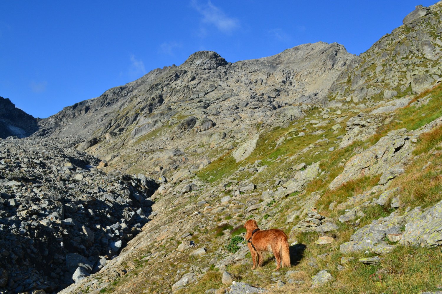 Solo io e Zeus al Colmet oggi, ultimi umani al Lago di Pietra Rossa e verso la Pouegnenta, più tre francesi col cane in salita verso il colle.