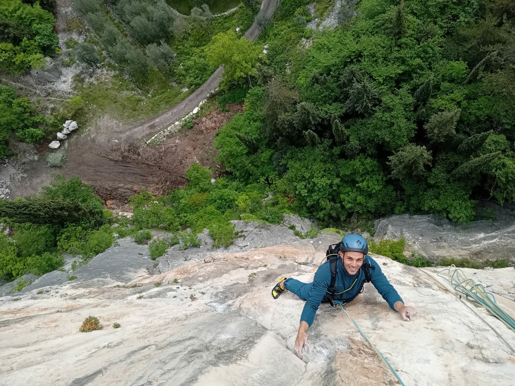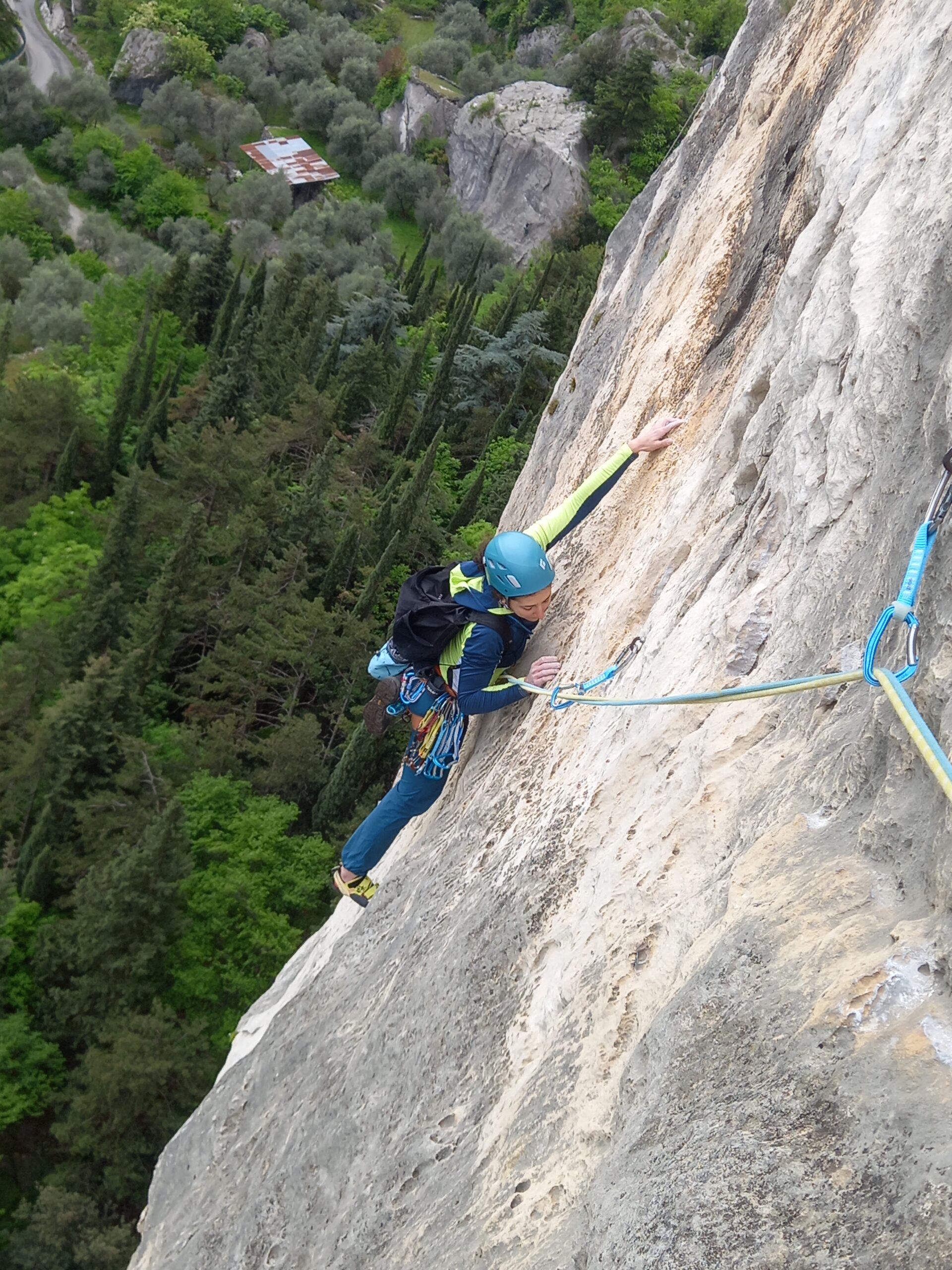 Arrampicata stupenda, roccia un po' levigata nella parte bassa, ma non troppo fastidiosa. Per me è stata una bel banco di prova... Gradi e chiodatura decisamente più severi rispetto alle altre vie moderne scalate in questi giorni. Il 6c è veramente obbligatorio!
