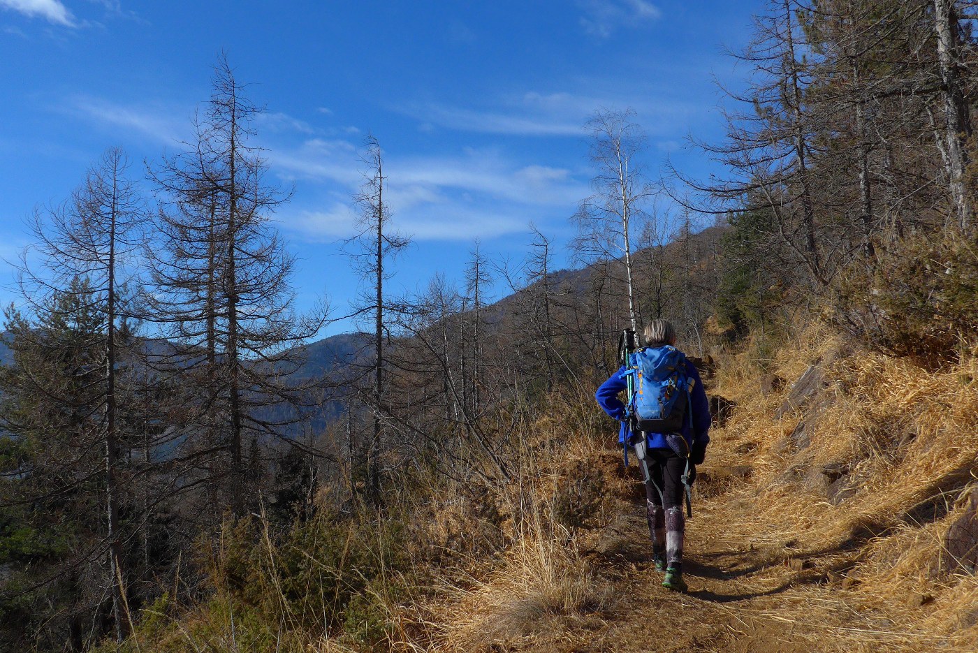 Al ritorno siamo scesi sul Colle Grisoni pensando che fosse più rilassante. In effetti il primo tratto non è male, ma dopo c’è un lunghissimo ciaplè che ci ha fatto faticare non poco.