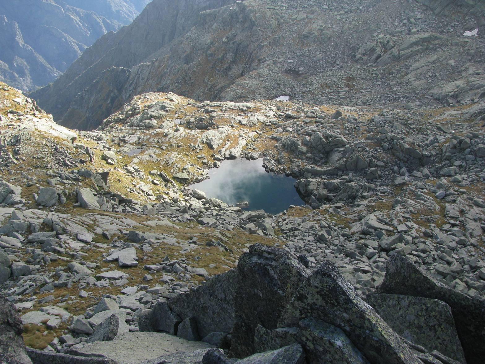Si prosegue su sentiero fra anfratti erbosi e pietraie giungendo al pianoro, dove in basso a sinistra si trova il quarto Lago Colombino.