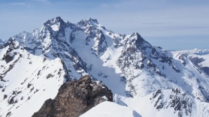 Discesa: parte alta su bella polvere leggermente pesante, parte inferiore su farina pressata dall’ottimo grip; si continua su bei pendii con neve portante smollata il giusto (cercando bene le expo) per terminare su ‘marmellata’ ben sciabile.