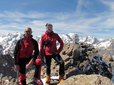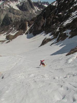 Neve a 5 minuti dall’auto! Ottimo rigelo notturno, temperatura +2° alle 6:00 e arietta gelida (finché dura molto utili coltelli e ramponi), cigliegina sulla torta una spruzzata di neve fresca fresca della notte nella parte alta. Canale sul Glacier de Combeynot (ammesso che esista ancora il ghiaccio) un po magro, ma ancora fattibile.