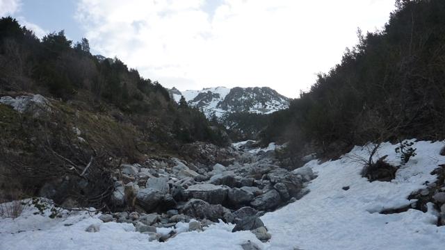 neve nella gorgia iniziale che inizia all’incirca alla quota del rifugio, neve di valanga compatta , poco dopo diventa sfondosa e con le ciastre si fà dura !!!