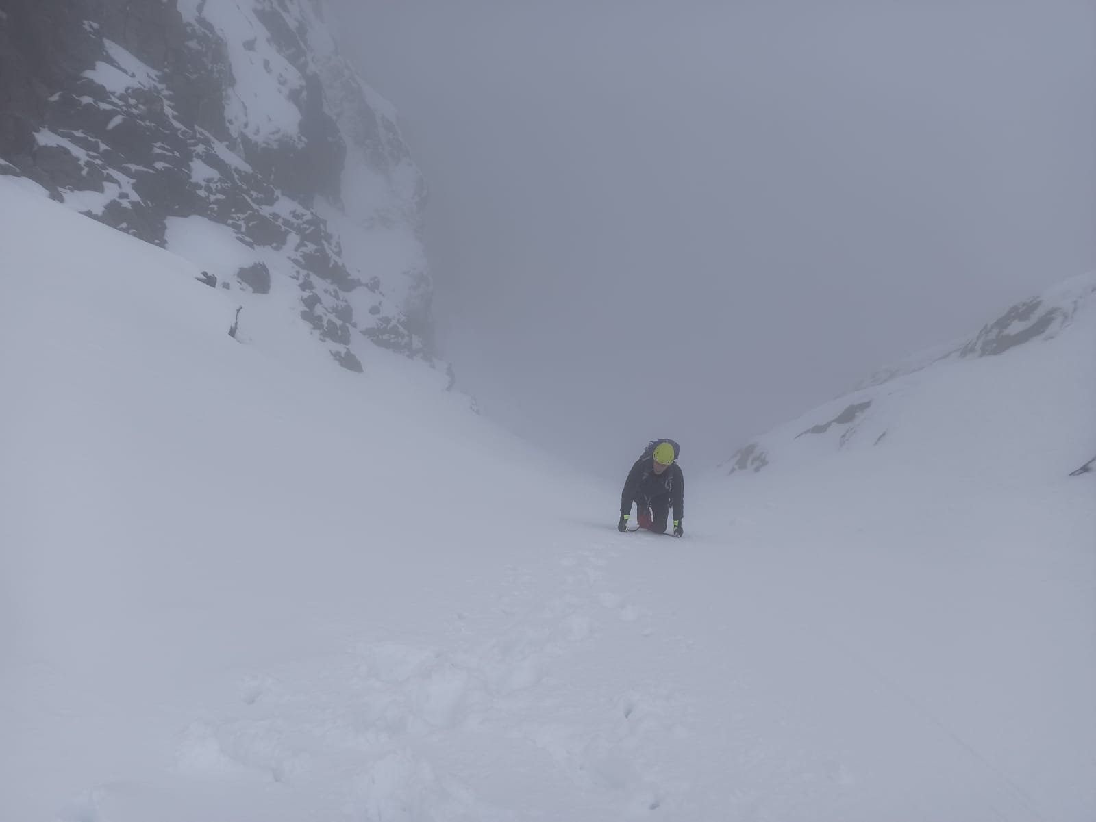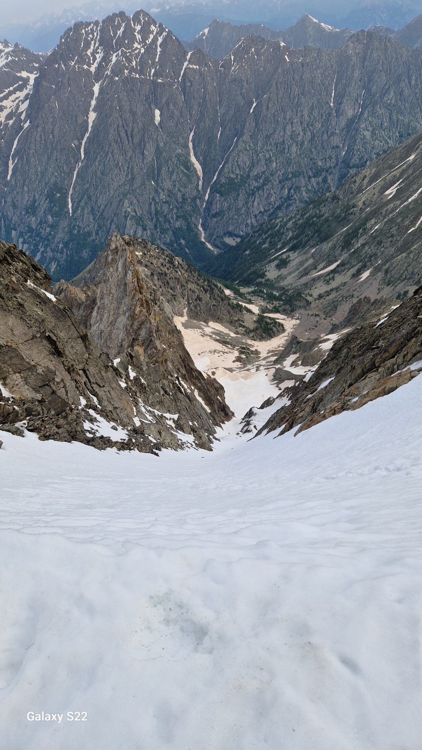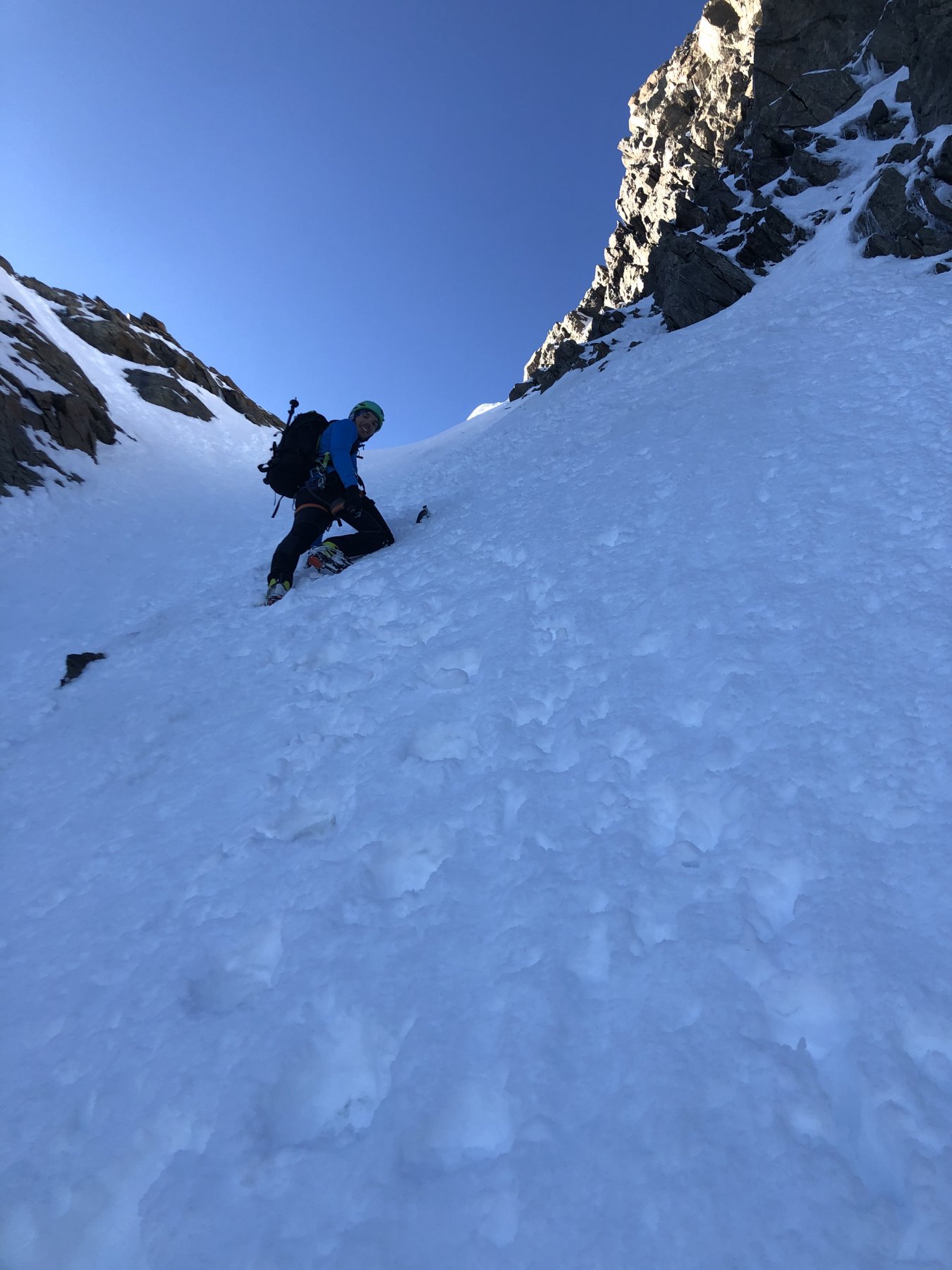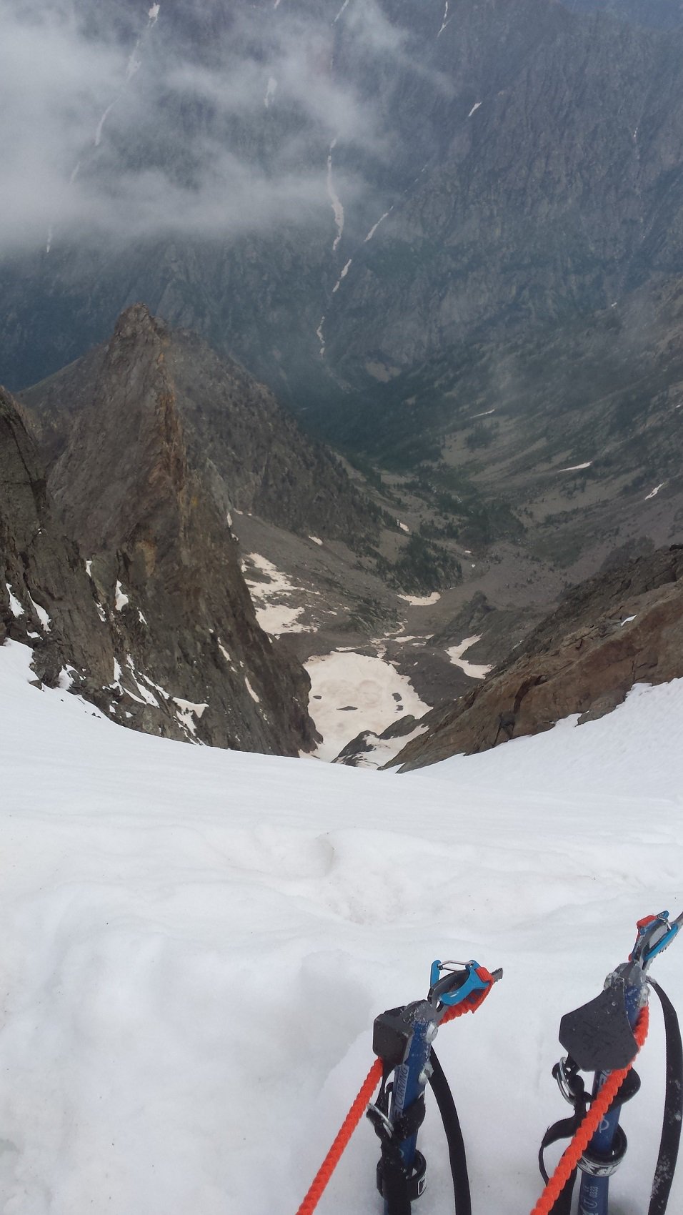 Discesa lunga e altrettanto complessa sul versante opposto, specie in presenza di neve ammollata dal sole, assolutamente da non sottovalutare.