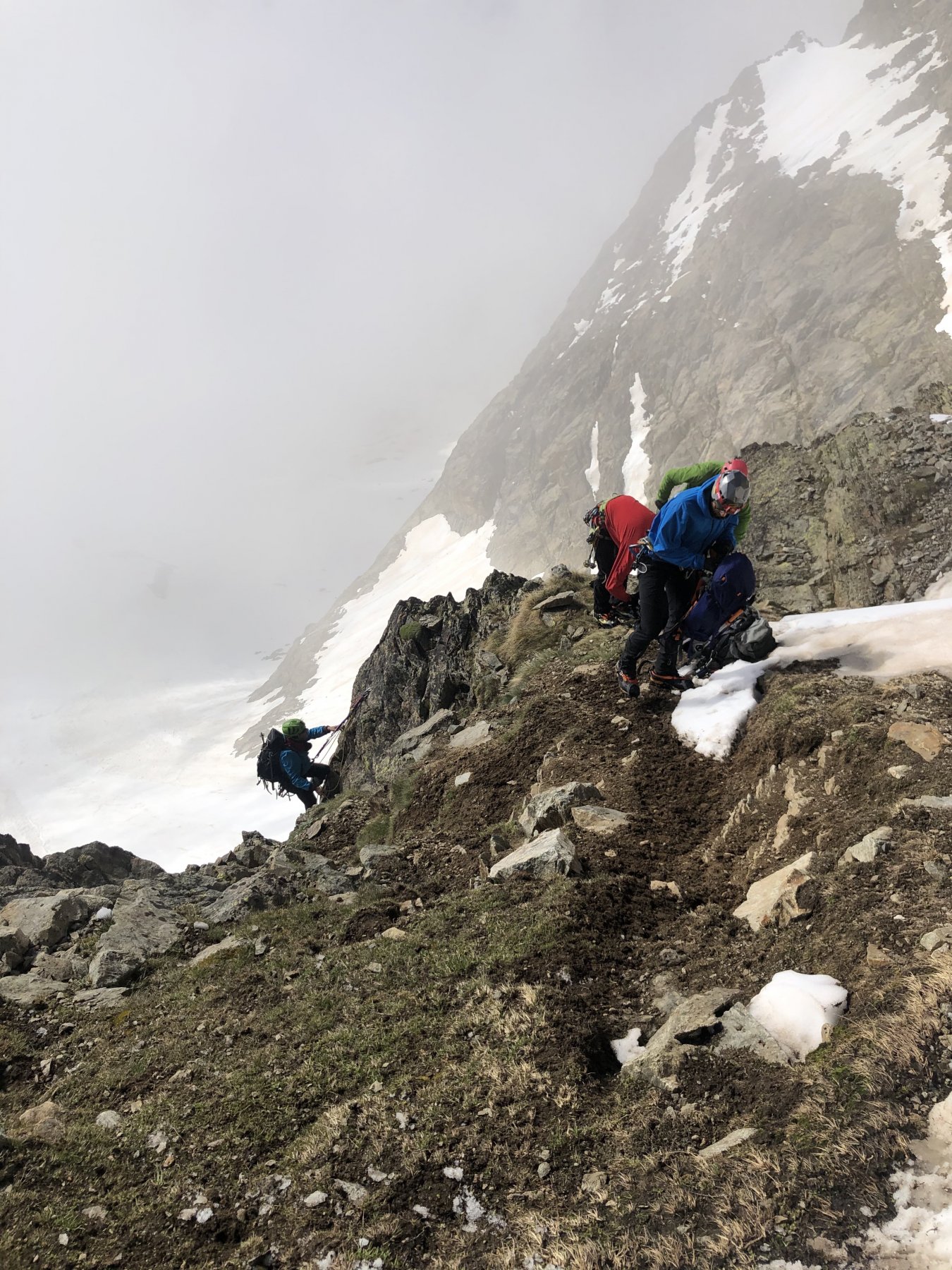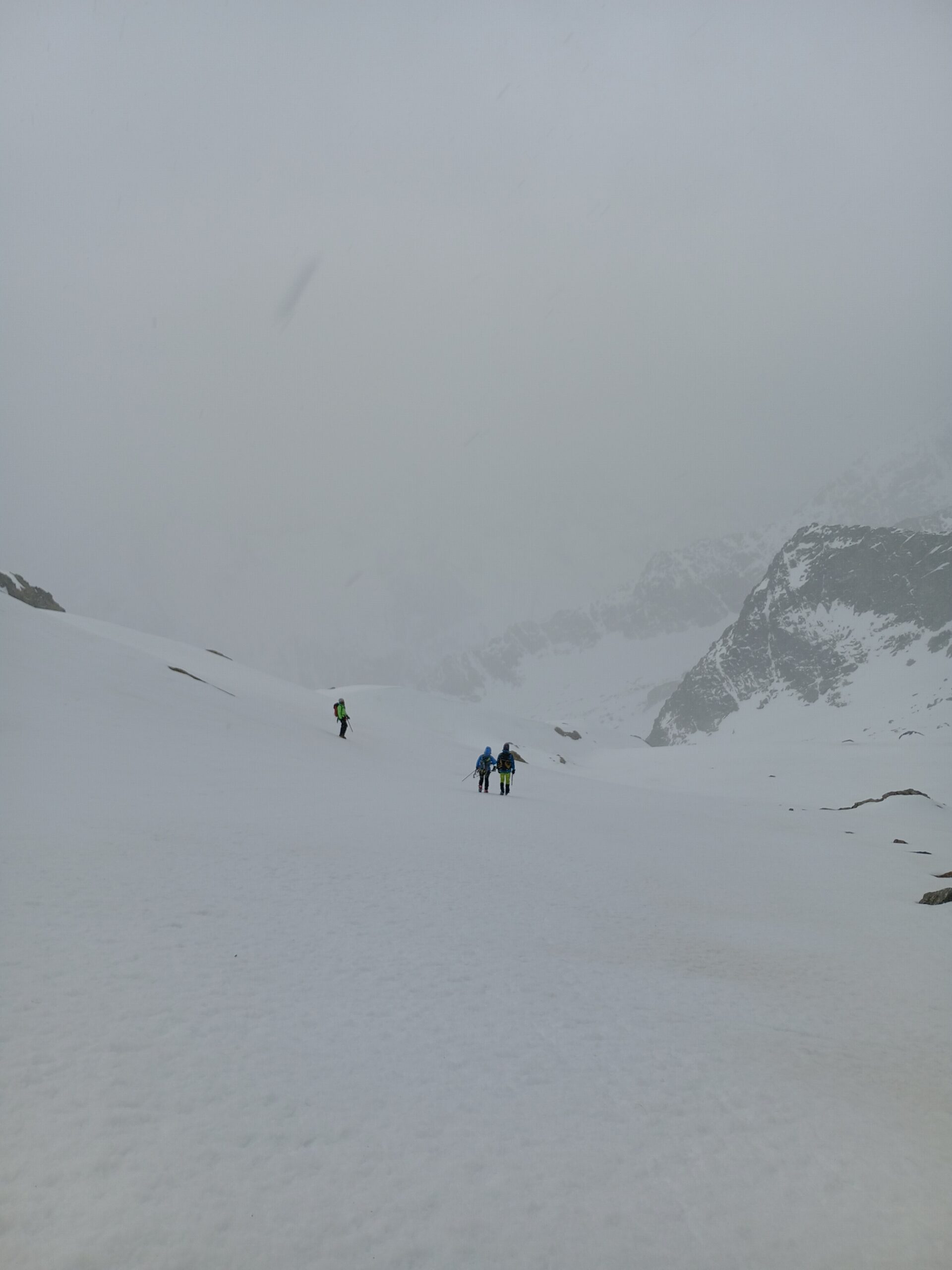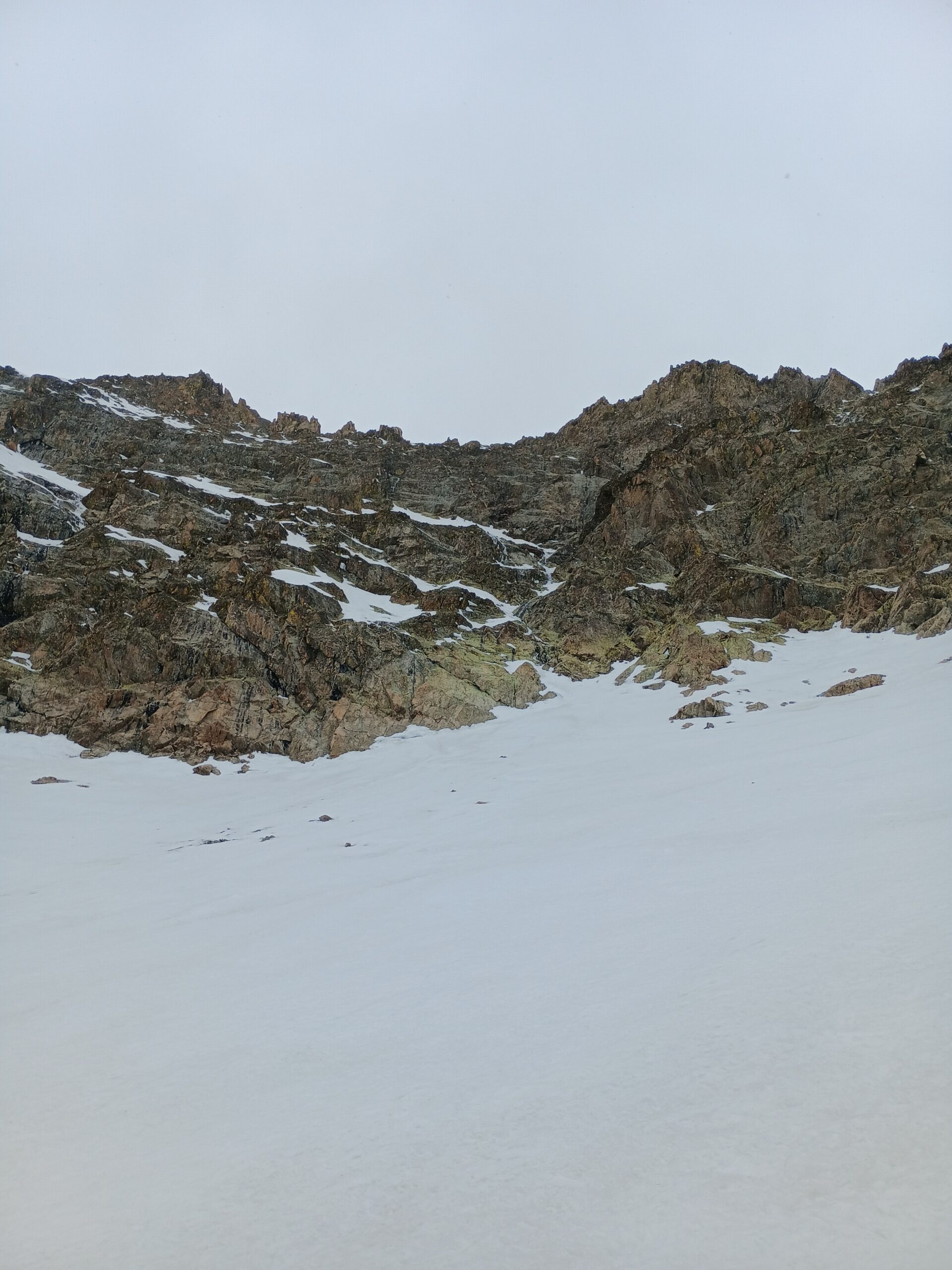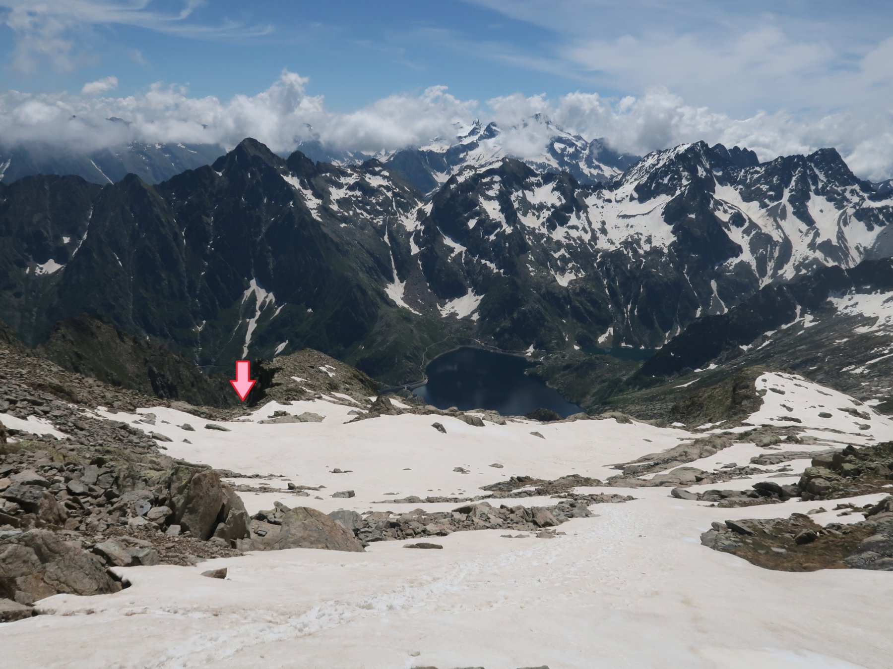 Discesa lunga e altrettanto complessa sul versante opposto, specie in presenza di neve ammollata dal sole, assolutamente da non sottovalutare.
