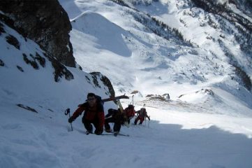 La prima parte della traversata del Monte Corbernas, si è svolta su pendii molto lavorati dal vento; il canalino finale (non ghiacciato) ha dato un tocco di alpinismo alla gita di grande interesse. Discesa nella prima parte bella, poi ravanamento lento fino alla piana.