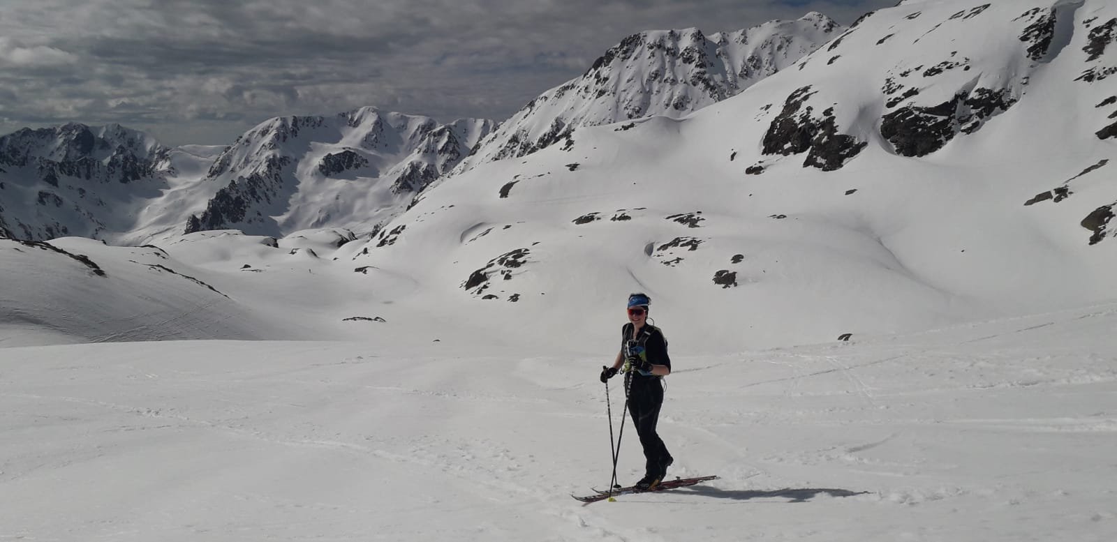 Portage di 15/20′ se si lascia l’auto nel parcheggio alto, ma si può proseguire sulla strada in macchina. Passati dal buco della marmotta canale tracciato e facile, fattibile senza picca. Plateau ben innevato e sciato in toto da noi, con un piccolo passaggio dry. Nel canale messi gli sci subito sotto la strettoia e giù a cannone su una super moquette che poi diventa più bagnata ma sempre goduriosa. In discesa ci siamo tenuti a dx del fiume riducendo il portage a 5′ circa. Con Petra al suo primo 3000 bravissima.