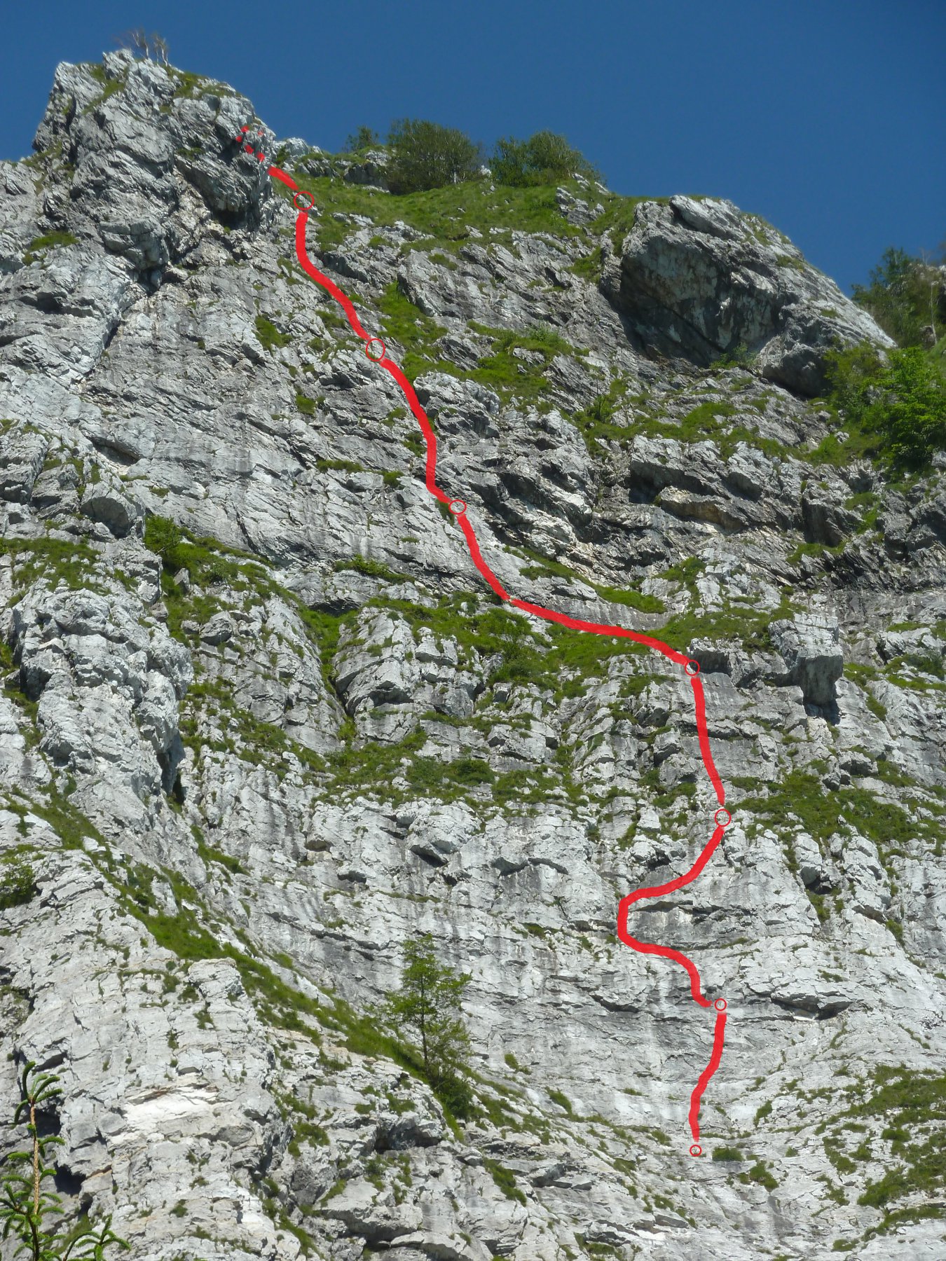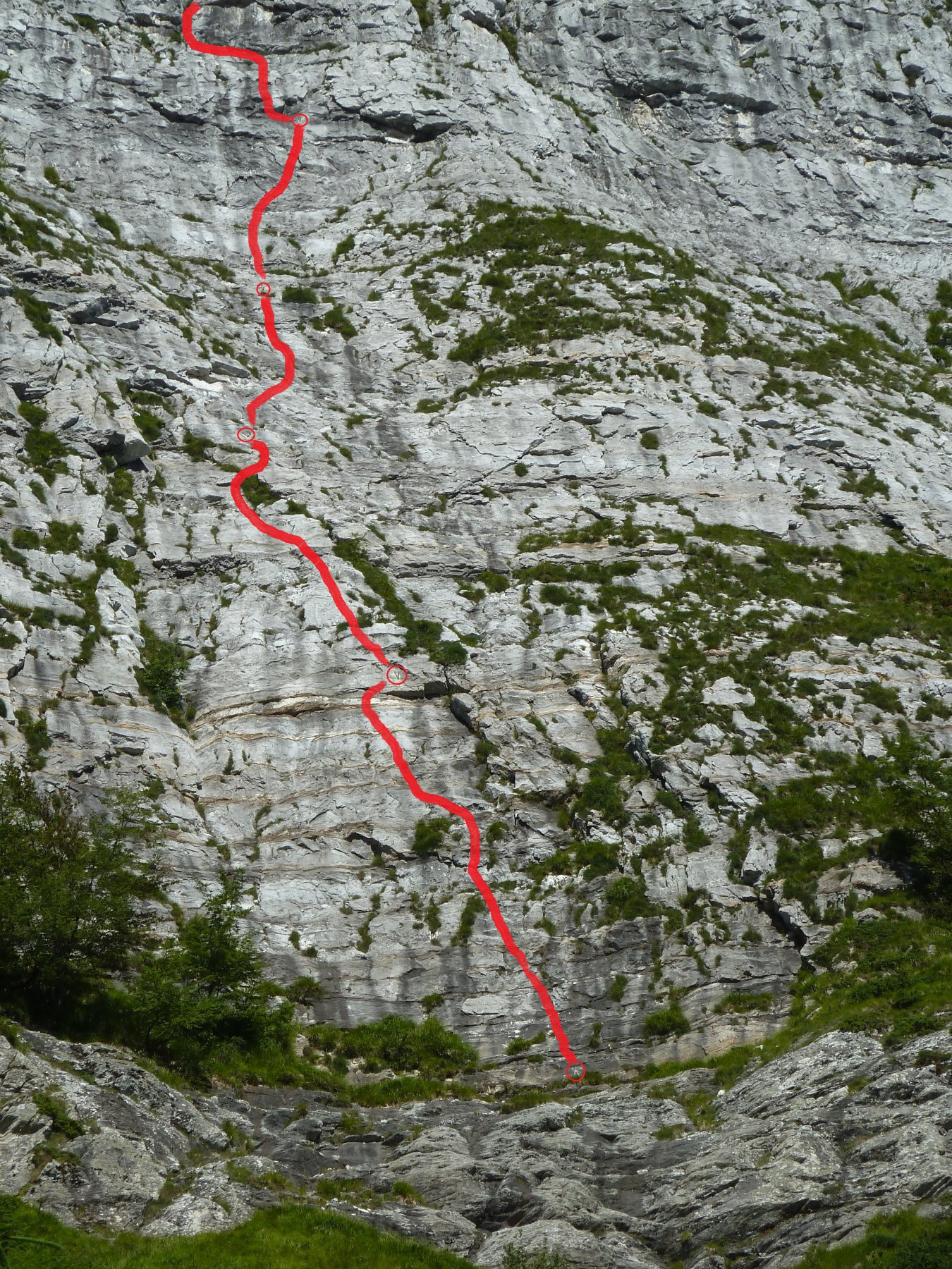 La via è spittata e tutte le soste sono attrezzate con catene, 9 tiri da max 30-35 metri. Tutta richiodata nel 2024, soste a spit da collegare. Non necessita di integrazioni.