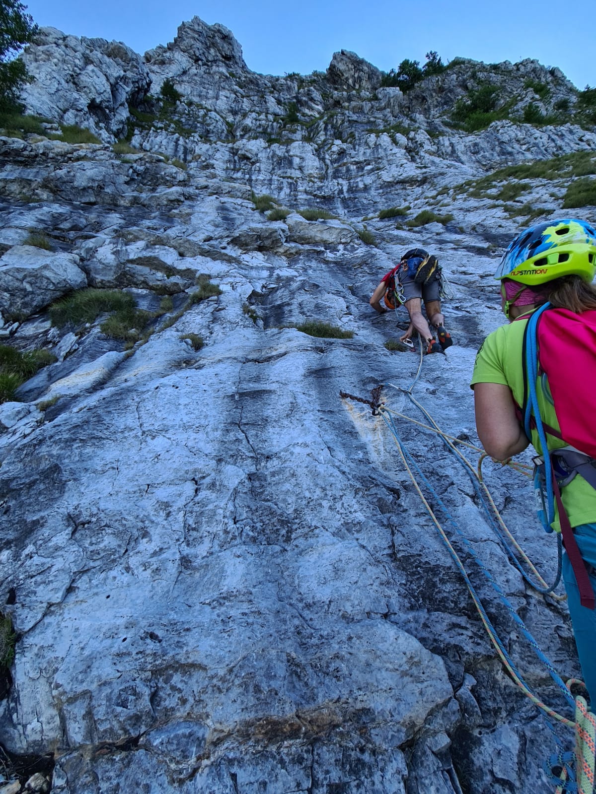 Roccia buona ma attenzione ai sassi che cadono da cenge e terrazzini, soprattutto se ci sono cordate davanti.