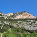 Raggiunto il sentiero CAI sul crinale del Cordespino, seguendolo verso nord si raggiunge facilmente la traccia di discesa della via Leone di Nemea che riconduce a Tessari. Imboccato il vallone di discesa seguire solo i bolli rossi ed evitare il bivio a destra per la Falesia del Talian, e il bivio a sinistra per la Falesia Lo Specchio.