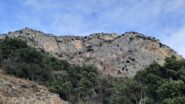 - L4: la progressione continua tenendo la destra attraverso una bella placca per poi rimontare su uno spigolo facile che termina alla base di un evidente dietro monolitico. La sosta è a fianco di un singolare olivo. 5a, 5b, 3+ (35m) 4 spit, 3 chiodi.