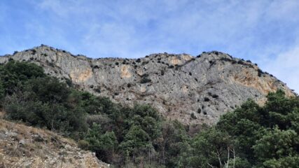 - L2: affrontare la partenza verticale sulla sosta aiutati da una grande lama raggiungibile una volta alzati di qualche metro. Finita la verticalità puntare il leccio verso sinistra fino giungendo ad una comoda sosta su un altro grosso leccio. 5b, 3 (20m) 2 spit.