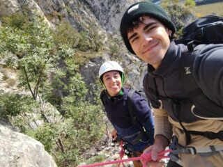 Al rientro abbiamo optato per la discesa tramite sentiero, corde fisse e ghiaione ma sconsiglio vivamente, se si ha la possibilitá è molto meglio calarsi in doppia lungo la via.