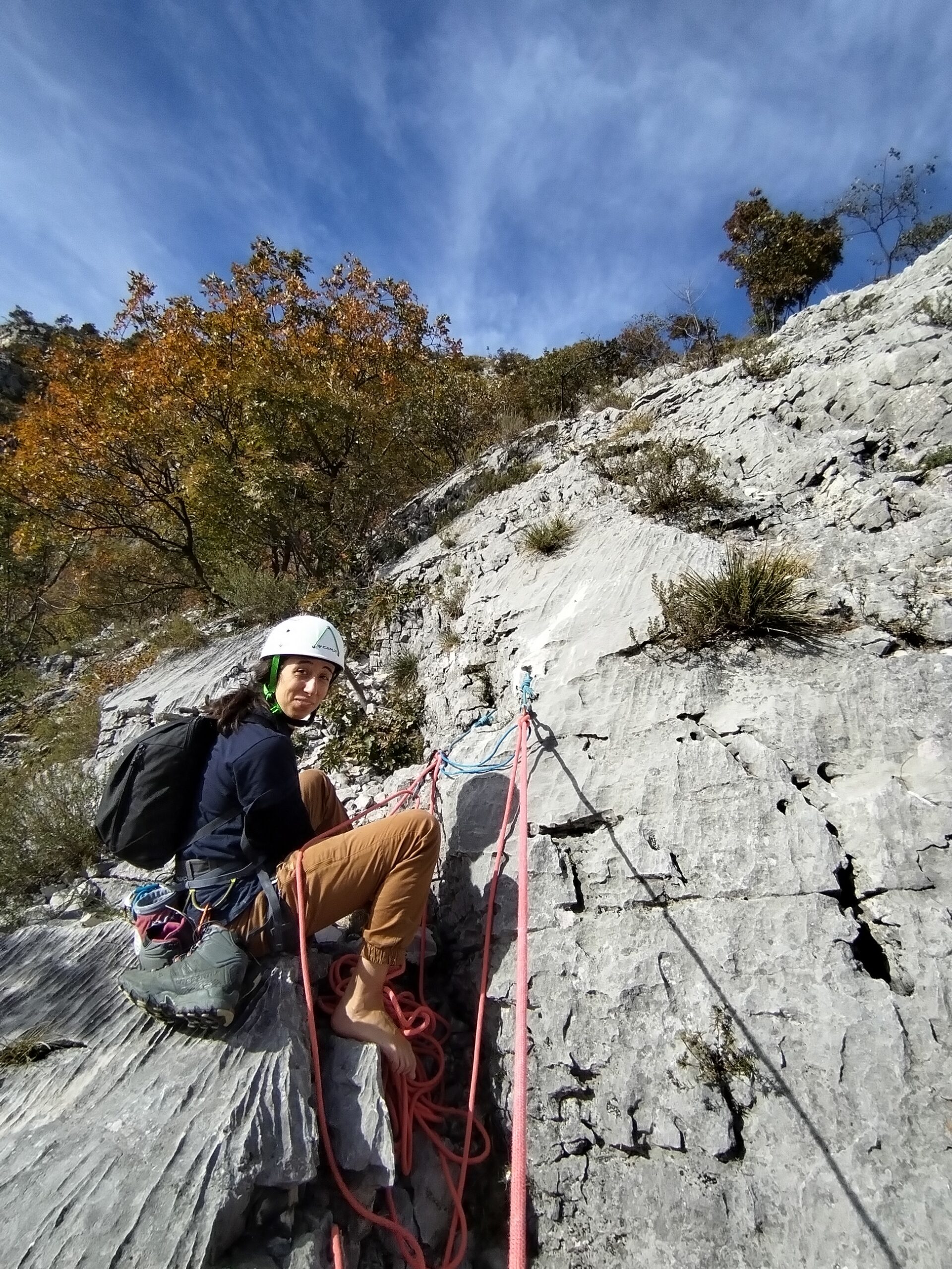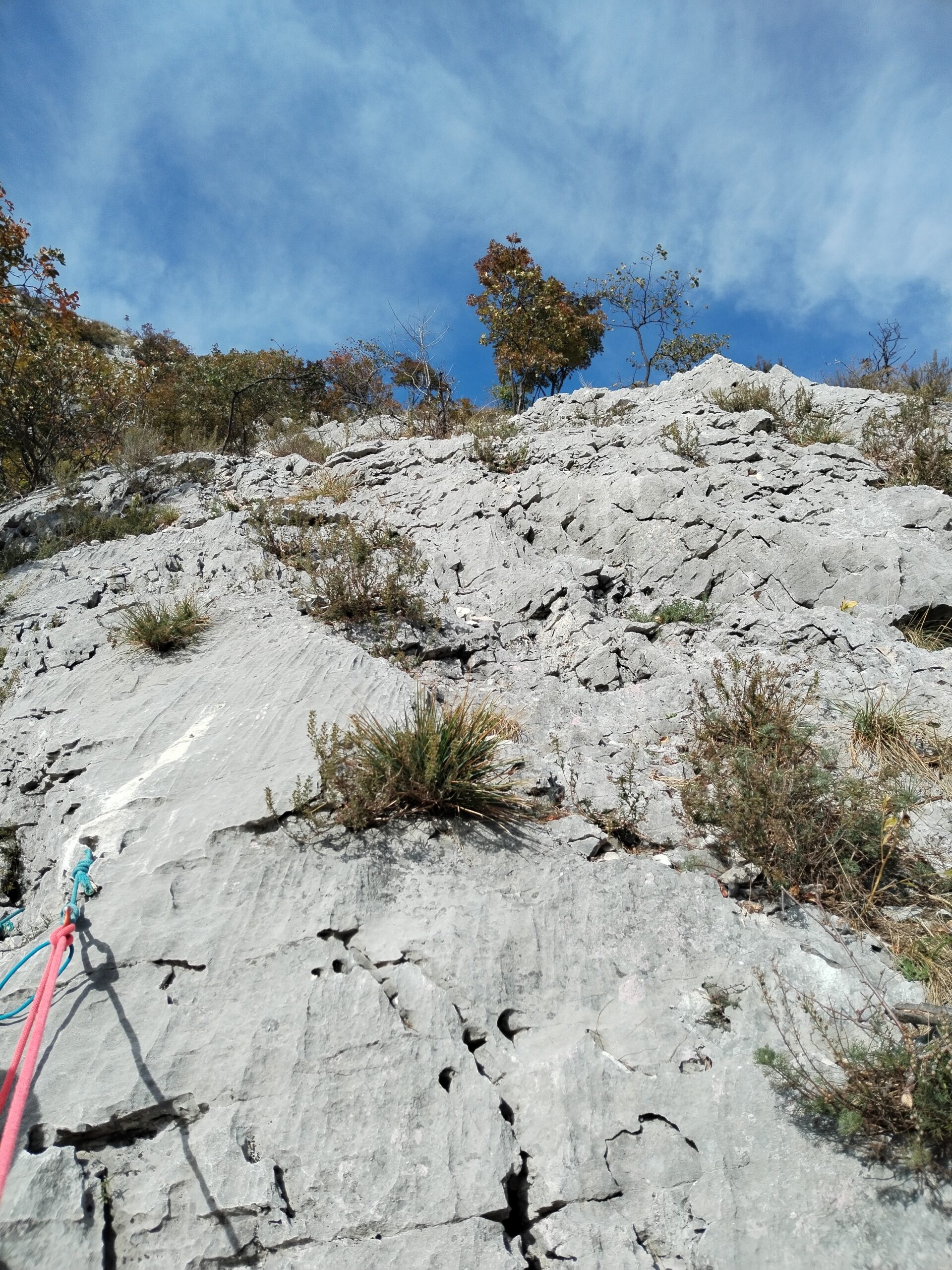 Via plasir sul V grado che nel complesso è un ottima idea per una mezza giornata libera se si vuole arrampicare su calcare fessurato e pieno di clessidre. Volendo si può integrare dal terzo tiro in poi con friend e dadi, effettuata in compagnia di Martina impiegandoci 2.30h.
