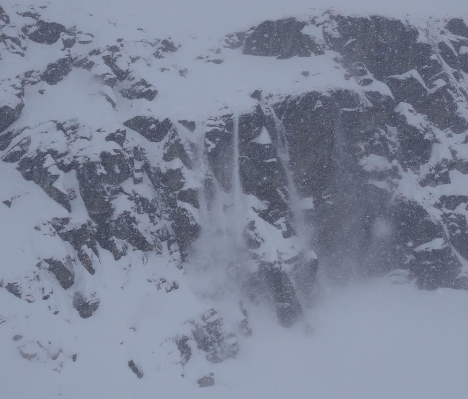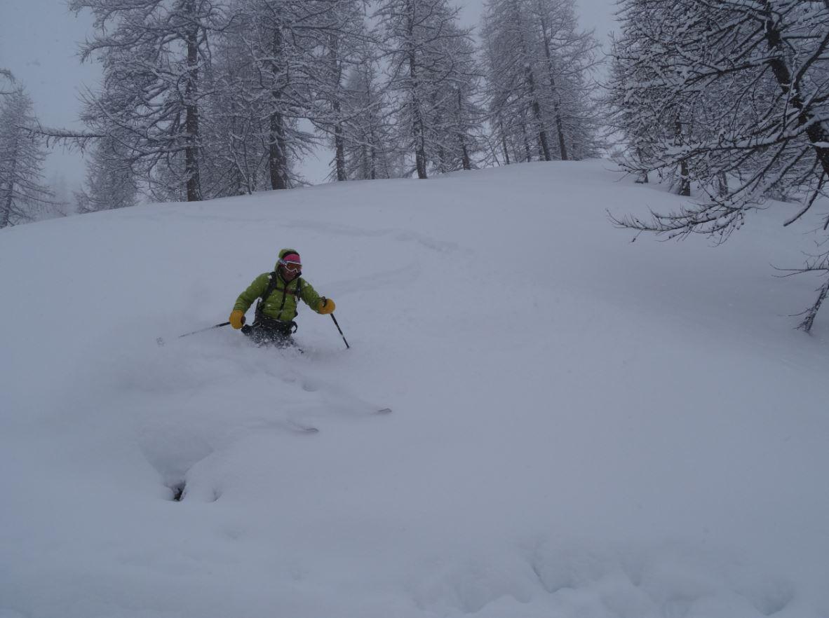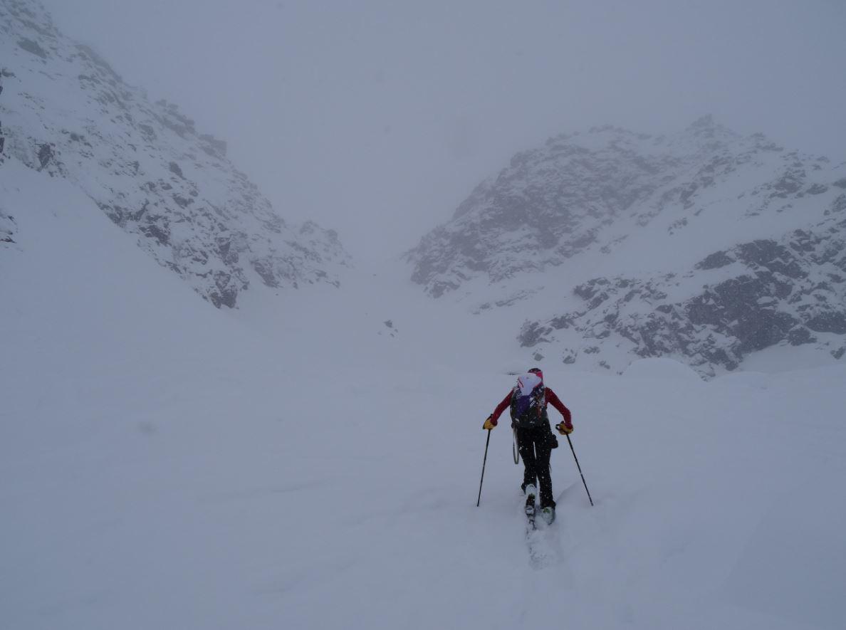 Arrivati fino alla base della forcella, poi numerose colate di varie taglie su entrambi i lati del canale e il crescente accumulo di neve fresca ci hanno consigliato lo stop.