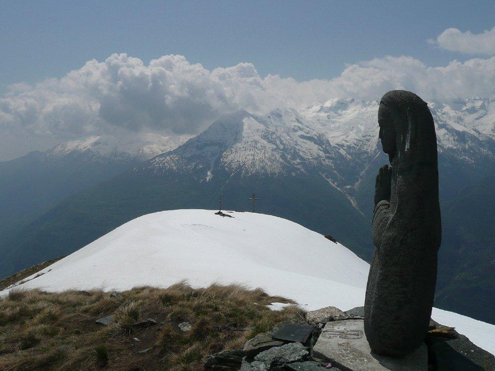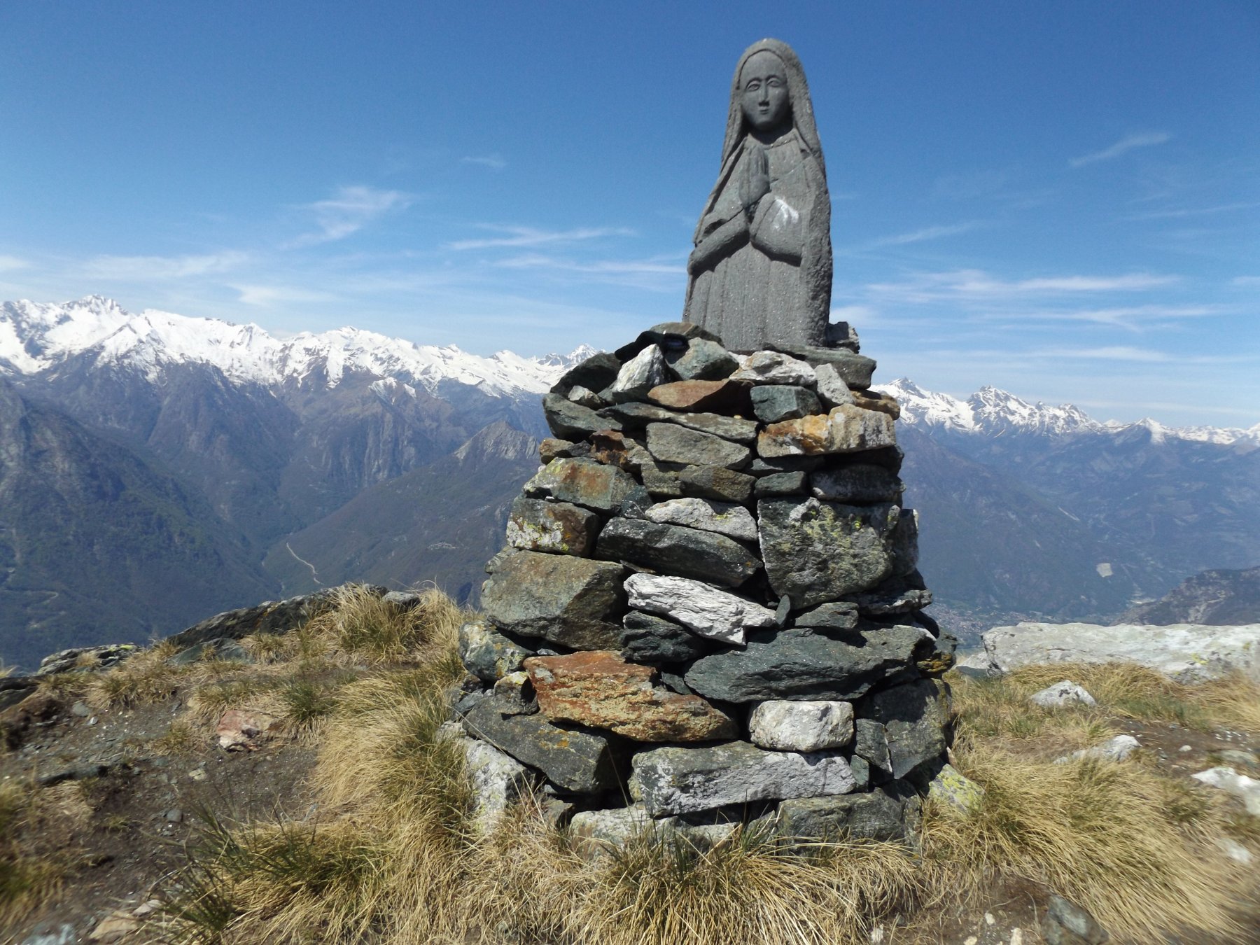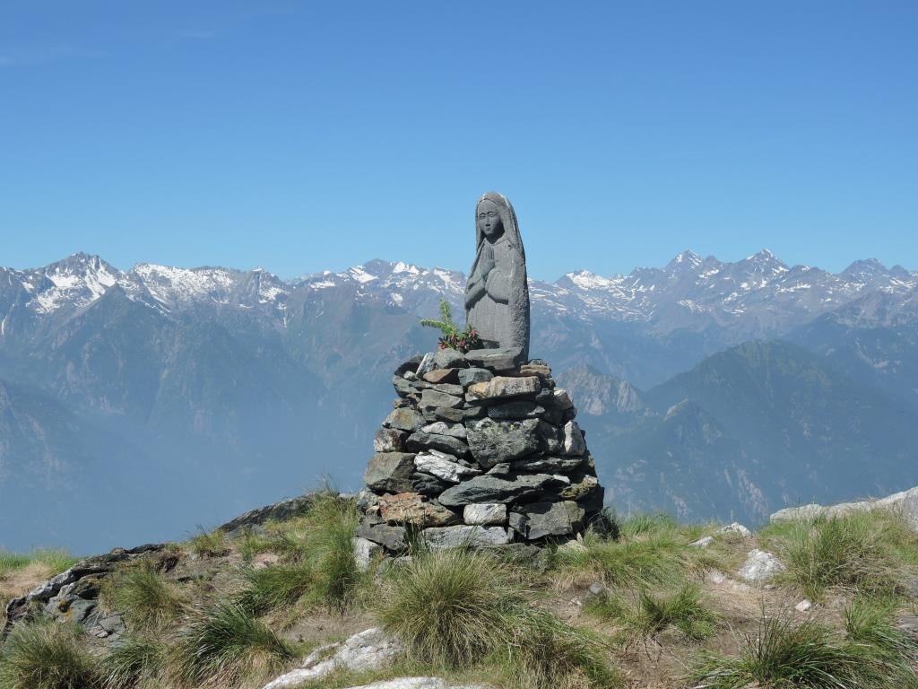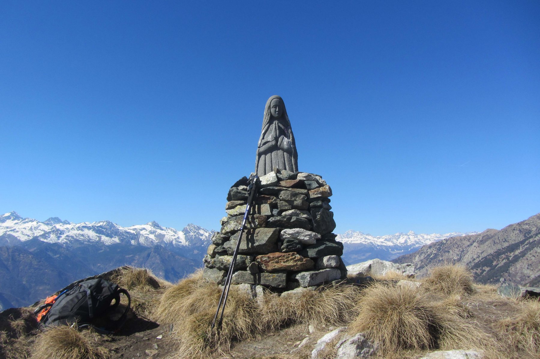 Seguendo la dorsale in direzione ovest in circa 20’si giunge sulla vetta sormontata da una statua della Madonna .