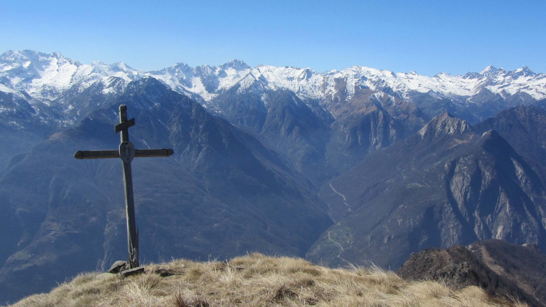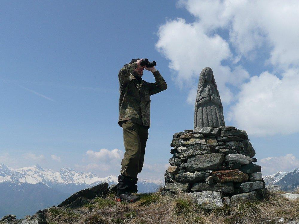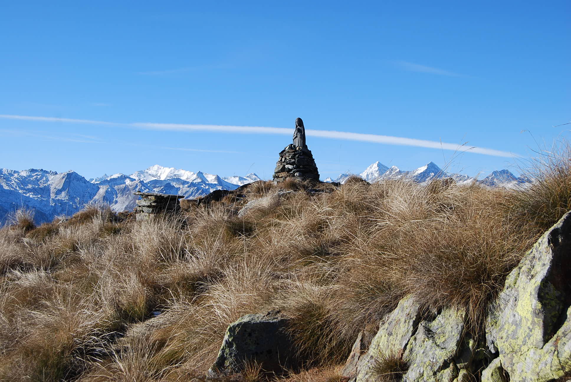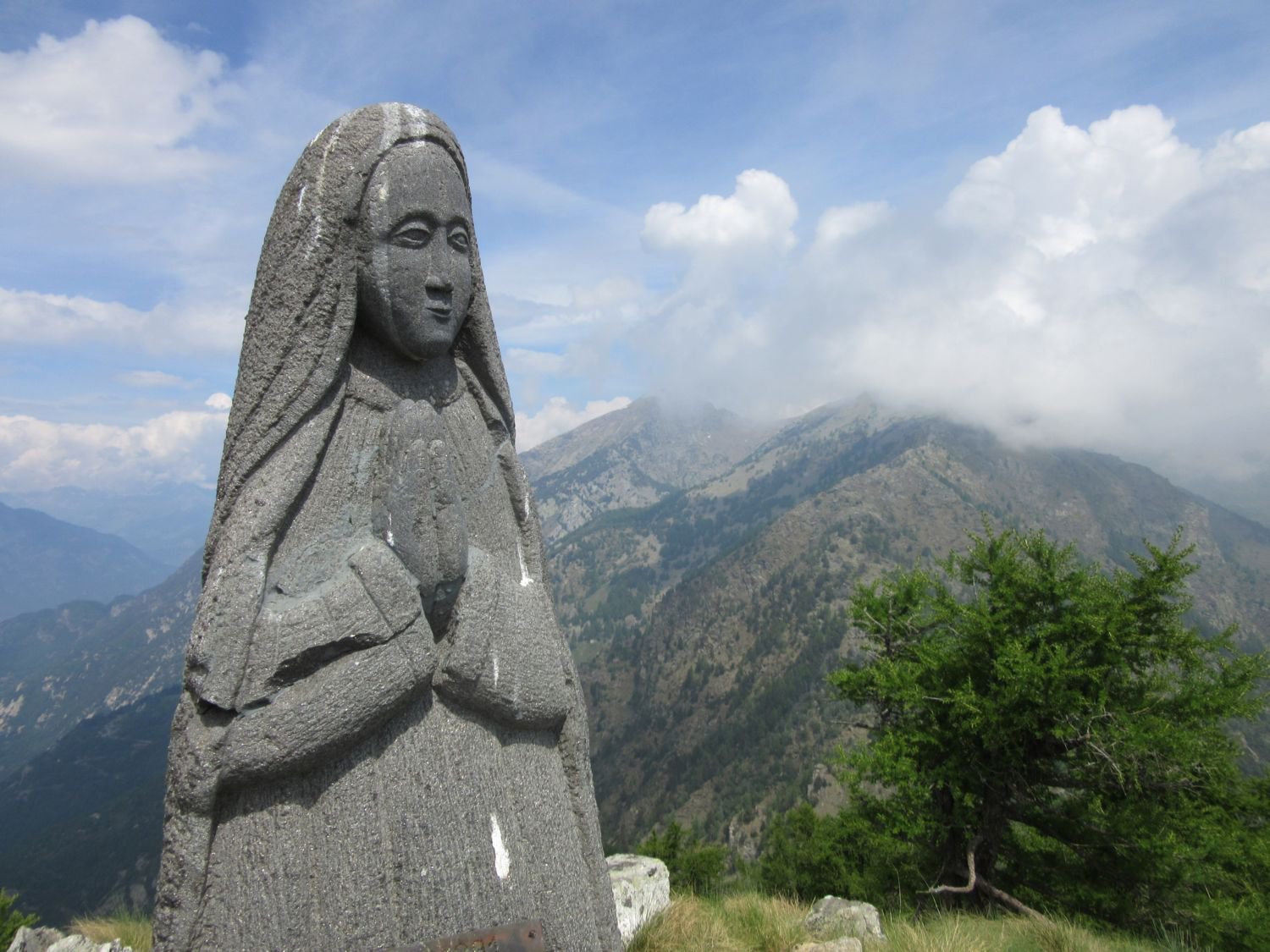 Seguendo la dorsale in direzione ovest in circa 20’si giunge sulla vetta sormontata da una statua della Madonna .