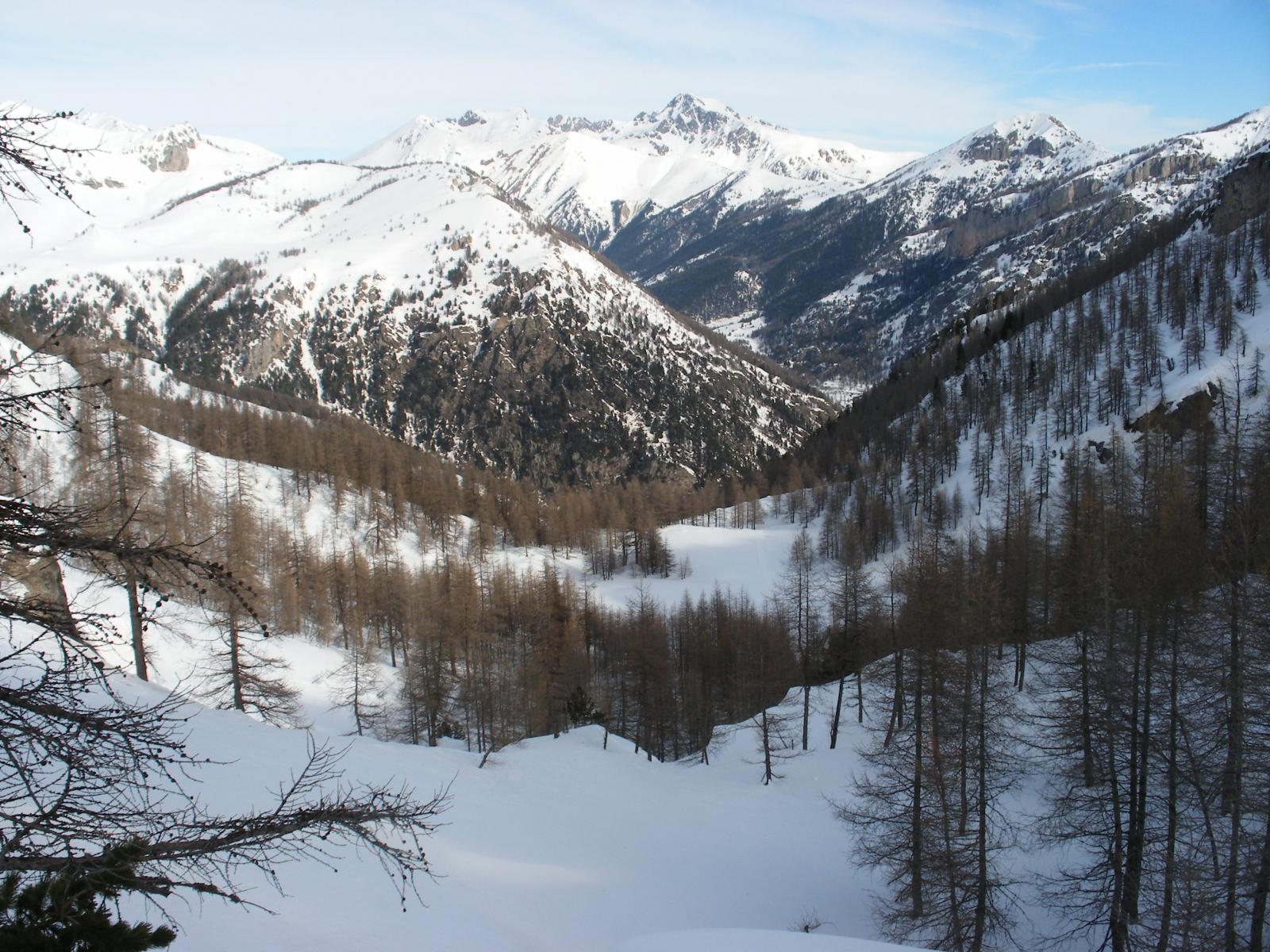 Dal posteggio del lago, palina n° 82, seguire le indicazioni per il rifugio des Merveilles . Oltrepassare i caseggiati delle Miniere di Valaura che si trovano sulla destra, passare la palina n°86 e seguire le indicazioni per la Cime de la Nauque, palina n°87 dove si svolta a sinistra, seguire il sentiero e risalire il boscoso e ripido pendio esposto a nord fino dopo la palina n°241, giunti nei pressi di una piccola radura a quota circa m.1750 dove il rio si biforca, deviare a destra seguendo il ramo secondario del rio fino a quota circa m. 1850 dove si piega a destra per scavalcare dei dossi, giunti ad una conca raggiungere il crestone (quota circa 2050) che ne delimita la sinistra orografica. Delicata in caso di neve non assestata la salita al crestone.