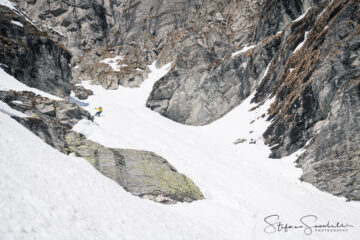 Saliti a Devero con l’intenzione di fare la Punta Marani , appena arrivati abbiamo capito che non era la giornata per via di forte vento da Ovest che ha caricato di neve fresca tutti i versanti a Est soprattutto sopra i 2000 m. Mossi in direzione di Orogna il vento ha rimosso molta neve su Cazzola e versanti sottovento e creato crosta da rigelo. Così osservando il canale abbiamo deciso di provare per questa via. Il canale era ancora bello pieno ma non di neve ventata ed erano visibili alcuni piccoli scarichi valanghivi di superficie nel tratto centrale . La neve era comunque di tipo primaverile e trasformata . Affondi di circa 30 cm durante la risalita a pieni. CI siamo fermati a quota 2300 per via dell’orario e il rialzo termico (12:30 ) e per l’evidente carico di neve instabile nel centro canale. ci siamo comunque goduti 3/4 della via . Per il rientro abbiamo tenuto la sinistra scendendo e dalle caratteristiche baite in discesa fino a Devero tenendo la. sinistra del torrente .