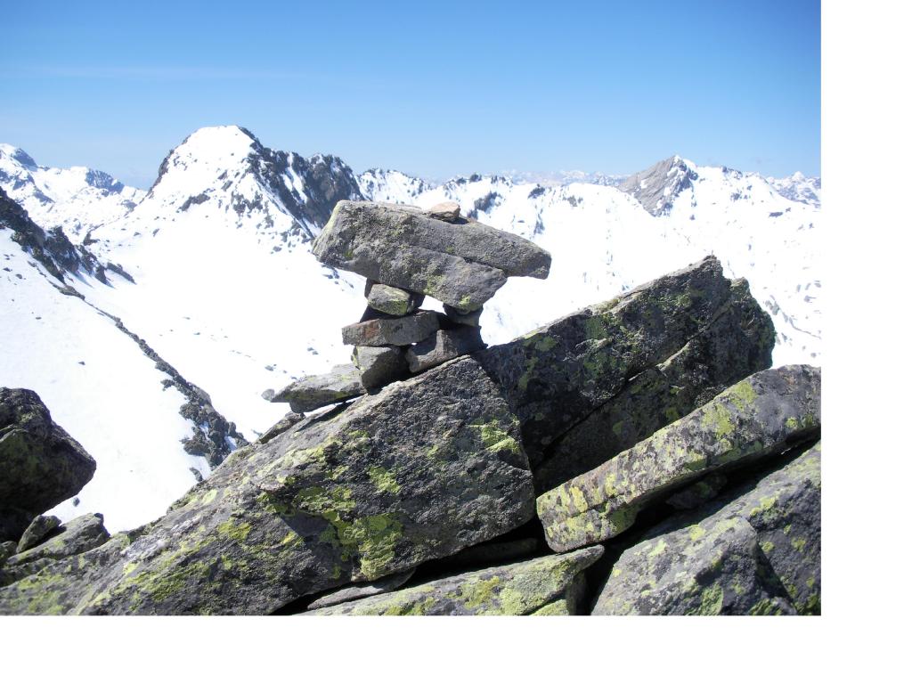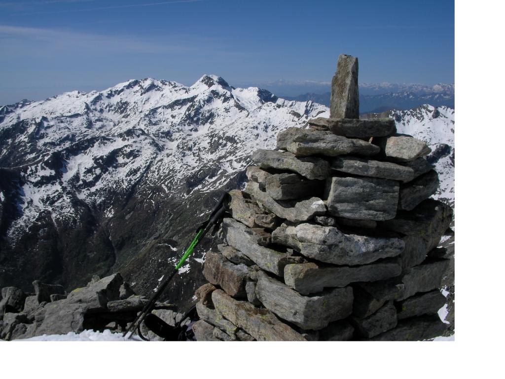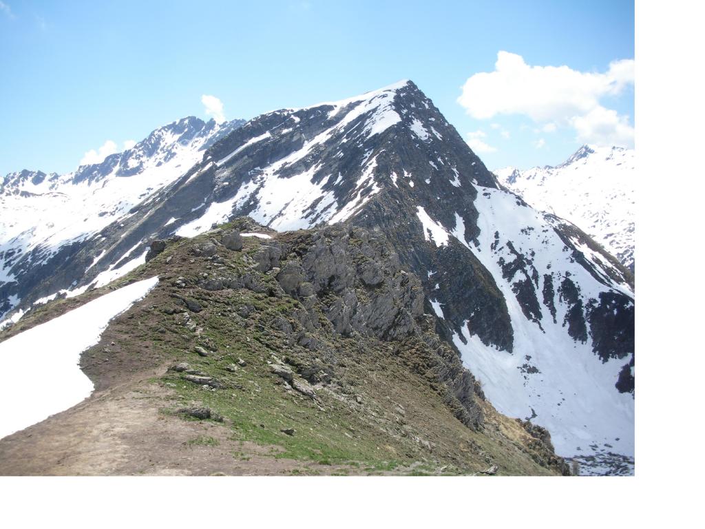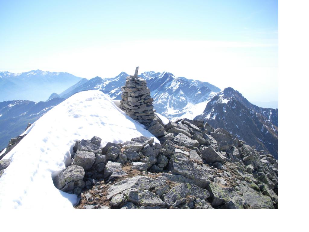 Salire a sx per il crinale ripido ma facile, solitamente innevato anche a inizio stagione. Si perviene cosi sulla cresta a q.2779, dalla quale si prosegue verso dx, e con una serie di saliscendi e qualche aggiramento si giunge in vetta.(grosso ometto in pietra)(ore 4.30-5).