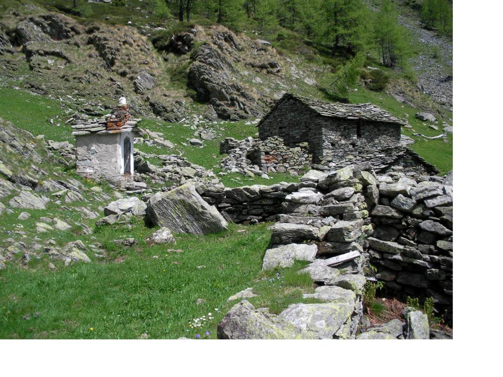 Da Outre l’Eve seguire le indicazioni per il colle degli Orti, con segnavia n°4. Poco dopo si incontra la Cappella di Cret, e l’Alpe Porte(m.1344).Tralasciare a dx il sent. per l’Alpe Vercoche e proseguire diritti fin dove il vallone si restringe a mo’ di gola, oltre la quale si incontra il pilone votivo di S.Antonio.