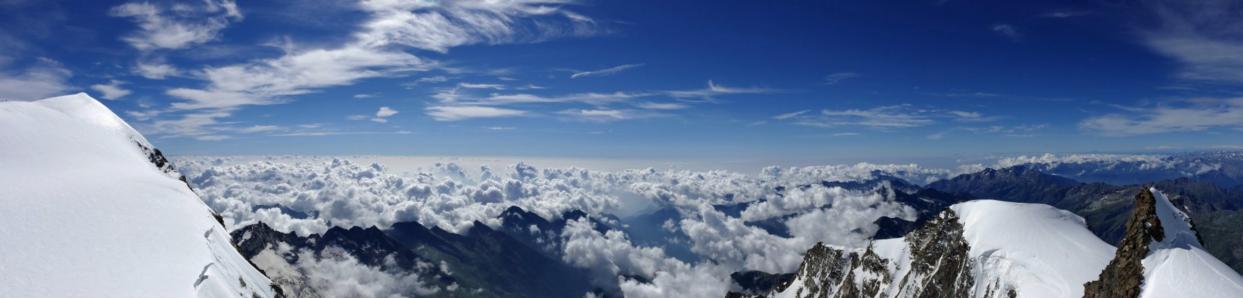 Panorami ampissimi dal Viso alle principali vette valdostane, ottima vista sui colossi elvetici e sulle sommità del Rosa.Mare di nubi sulla piana.