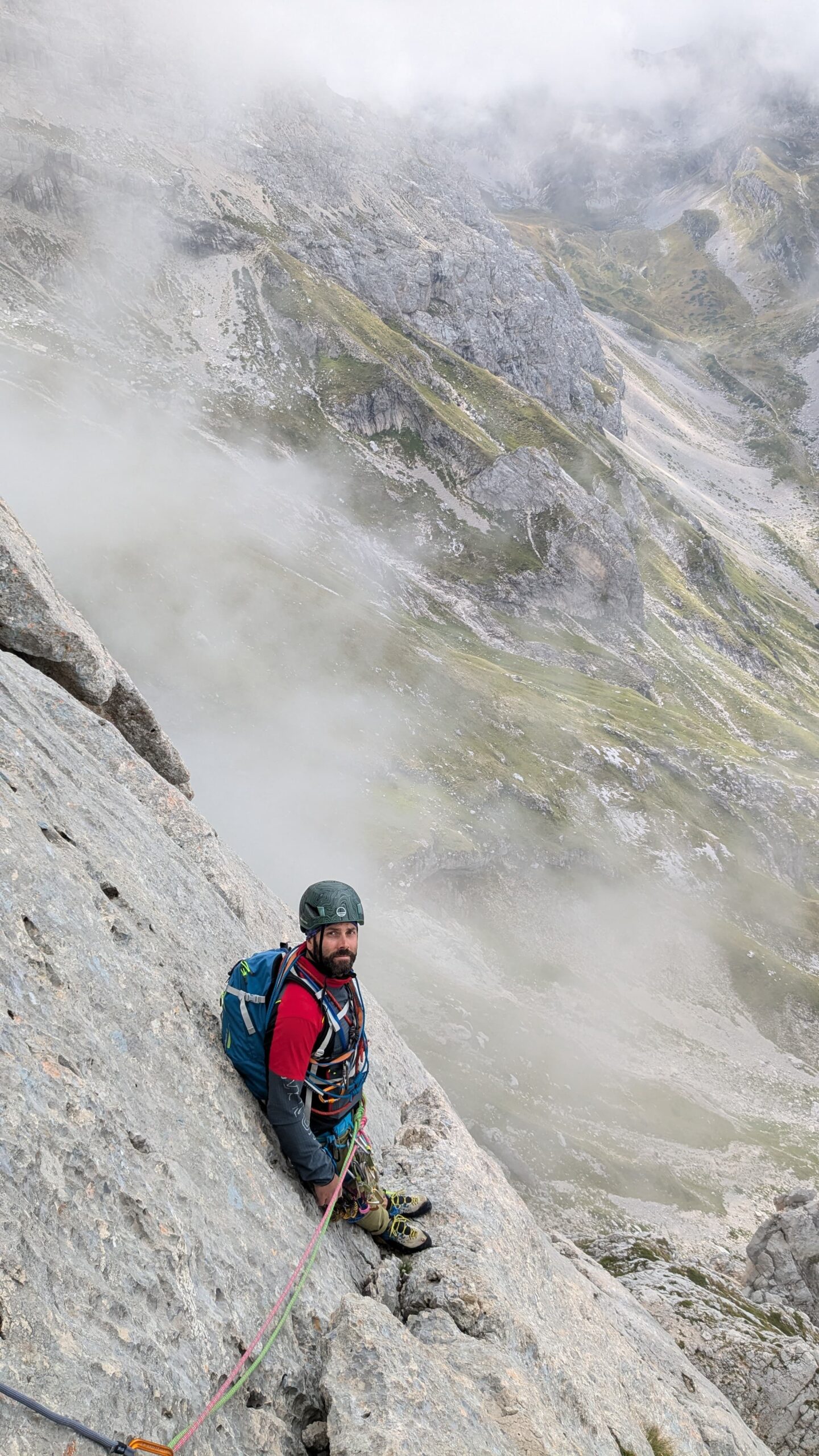 eviterei di cuore il canale. Dalla sosta, scendere con attenzione una ventina di metri verso nord, passare tra due massi incastrati e trovare la comoda sosta di calata della parete nord dove confluiscono le molte vie della nord.