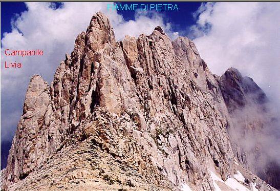 Uscita: sulla cima del Campanile Livia, lato SE, una catena permette di attrezzare una doppia. La catena a sua volta è raggiungibile mettendosi in sicura su un masso attrezzato sulla cima. Roccia ottima e facilmente proteggibile. 140 m.