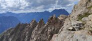 - L3: salire sul pulpito posto sopra la sosta aggirandolo da destra , quindi percorrere il sovrastante diedro delicato, al termine proseguire verso destra su placche abbattute (6a+, 4, 8 fix + 2 chiodi, 28 m)