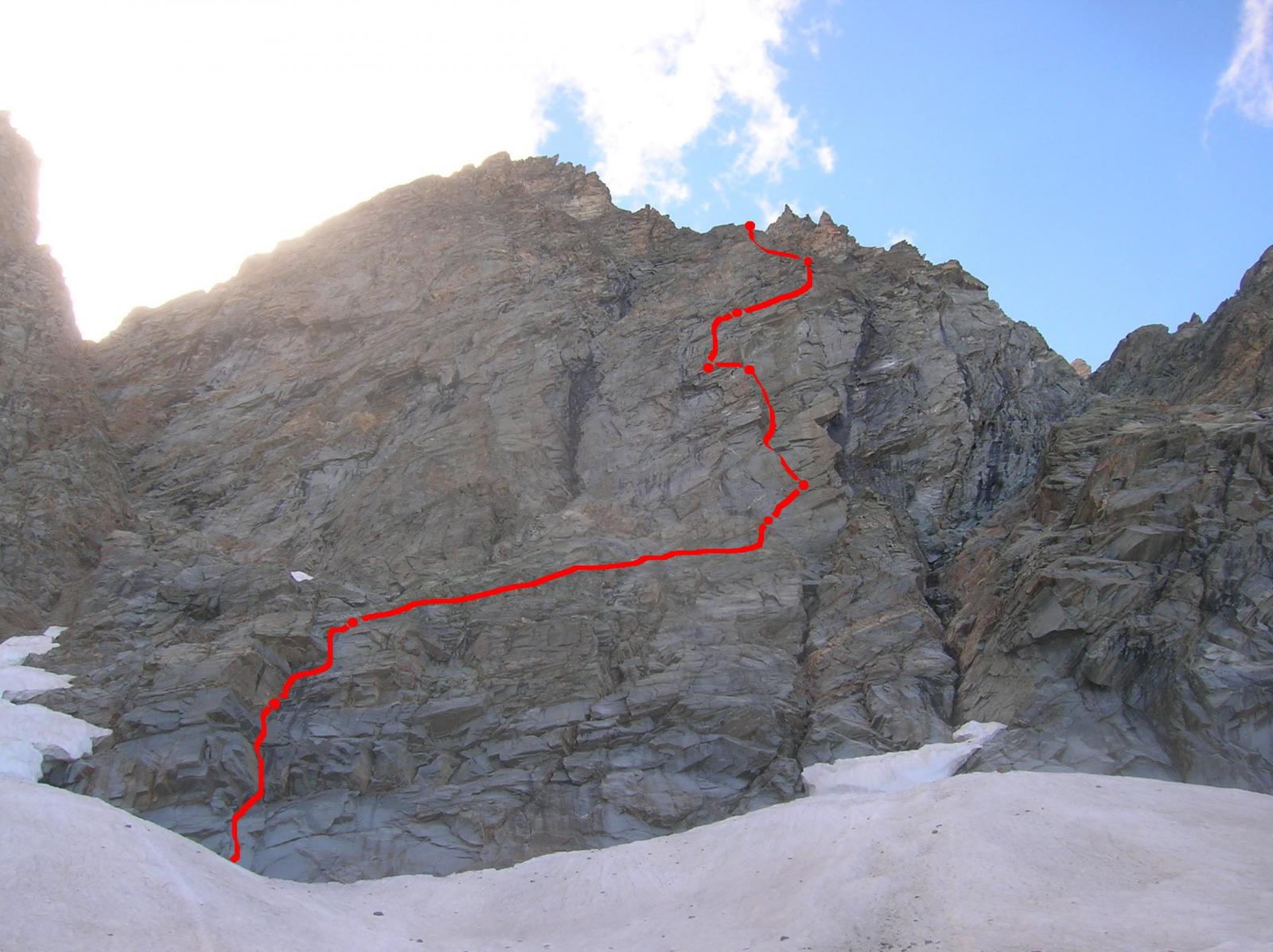 La via è stata aperta in maniera tradizionale, non è stato lasciato nulla a parte le soste utilizzate anche per le calate. Rappresenta forse l’ultima possibilità di via tradizionale sulla parete. Purtroppo la conca della parte alta, racchiusa nei crestoni dove passano le vie Mellano e Manera, non permette una linea autonoma. La via offre l’arrampicata più bella e sostenuta della parete e si svolge su roccia buona, a tratti ottima. L’ultima via aperta in questi luoghi risale al 18/08/81, sulla Cresta di Mezzenile, da parte della cordata Grassi-Ala.