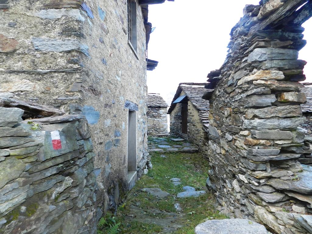 Si attraversano alcune vallette, si passa dalla località Balmel Freddo per poi passare di fianco ad una baita isolata ove un cartello in legno indica il proseguimento per Corte Buè. Con una discesa più marcata si raggiunge un torrentello che si costeggia per un tratto per poi attraversarlo. Una breve risalita ci conduce al nucleo di baite di Corte Buè, dove uno degli edifici è stato riadattato ad uso rifugio dall’Associazione Escursionisti Val Grande (chiedere le chiavi per accedervi).