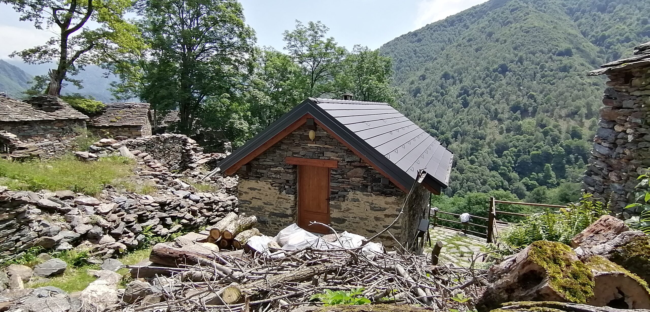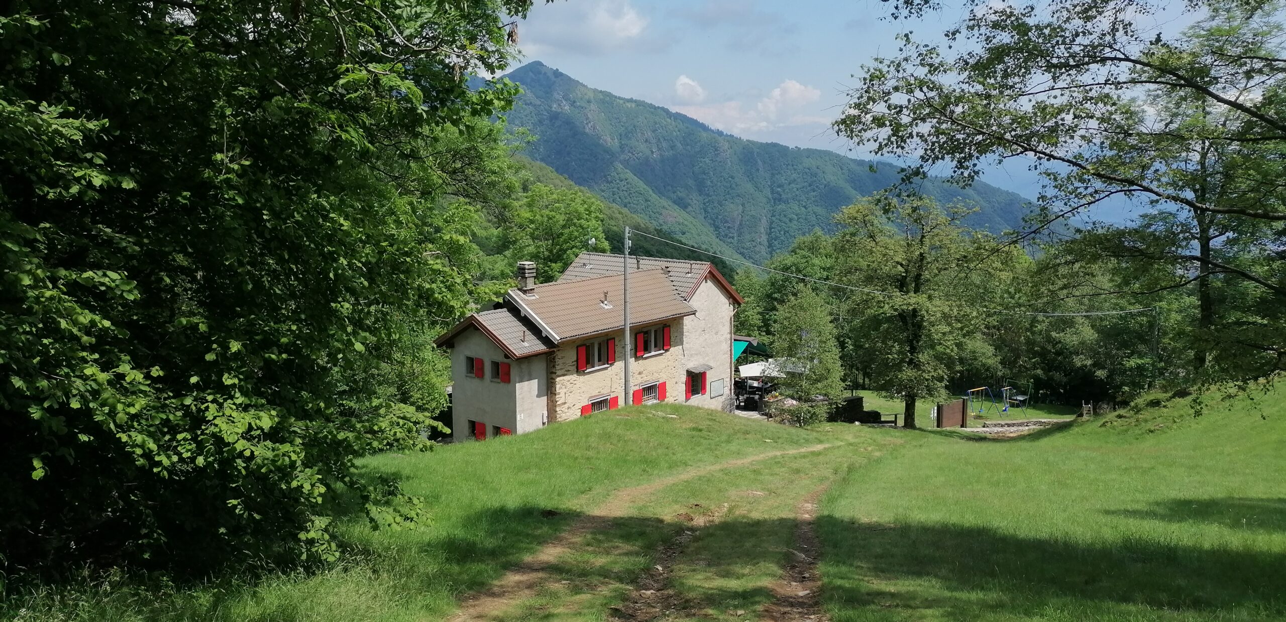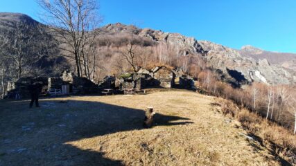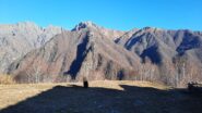 Stupendo il colpo d’occhio sul Pedum e sugli alpeggi di Velina. Volendo compiere un giro ad anello si prosegue in salita fino a portarsi agli edifici + in alto dell’alpeggio.