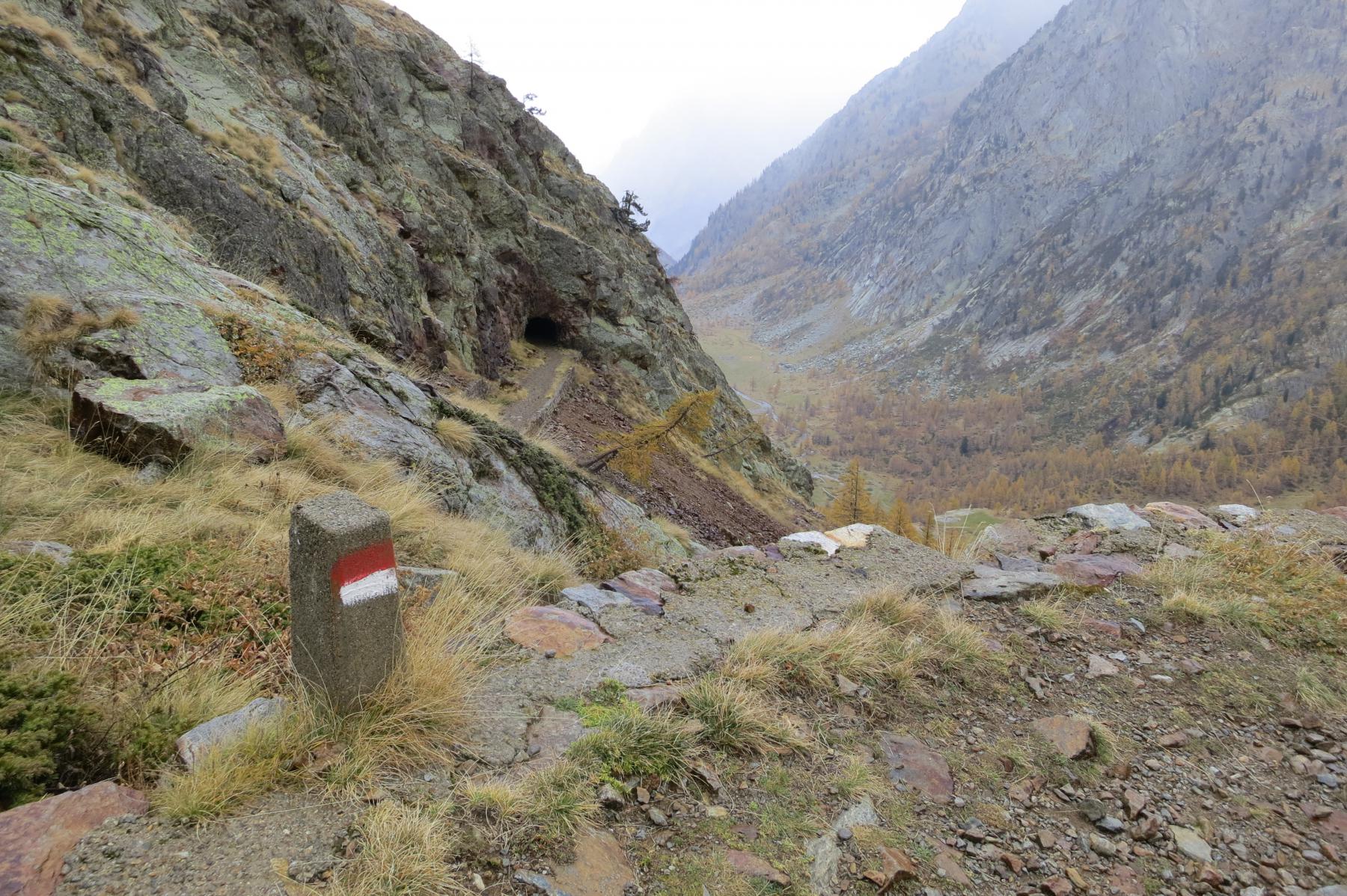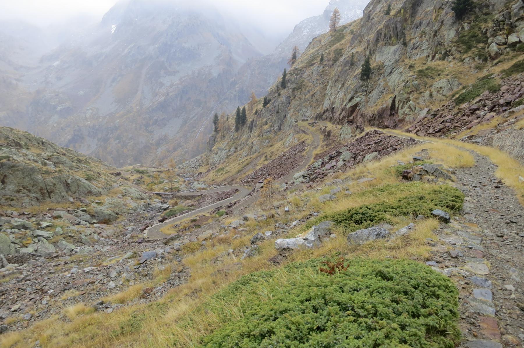 Il lago inferiore di Valscura (m. 2274) è visibile scendendo, ma la mulattiera incrocia la rotabile militare di Valscura a valle del lago, che dista circa 15 minuti dall’incrocio, salendo a destra (consigliabile andare a visitare). Prendendo a sinistra si segue la vecchia rotabile militare (tacche rosse e bianche), la si lascia per seguire una mulattiera a destra prima di una galleria, ci si ricongiunge nuovamente alla rotabile e la si segue fino al Pian Valasco e quindi alle Terme.